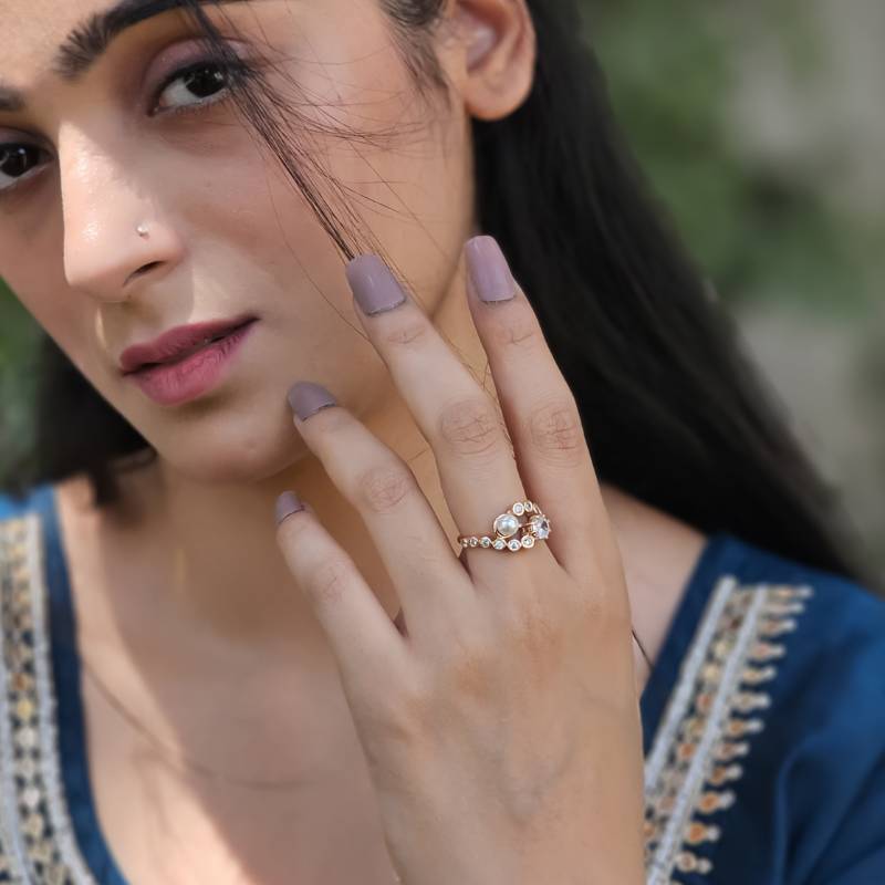 Antique Pearl & Zircon Twist Ring- Rose gold