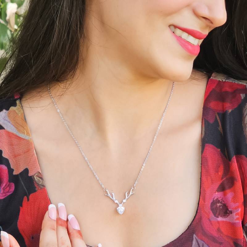 Charming and graceful, the 925 Silver Deer Heart Necklace blends nature’s beauty with romantic elegance. Featuring a delicate deer antler design embracing a heart motif, this sterling silver piece is perfect for those who love unique, symbolic jewelry.