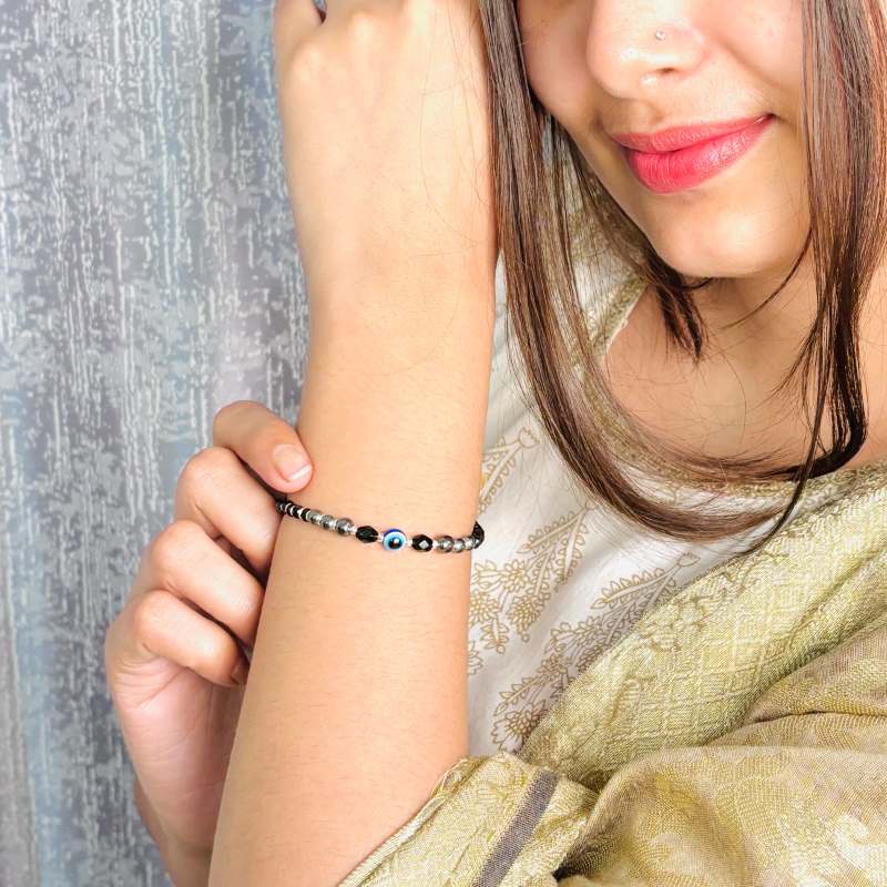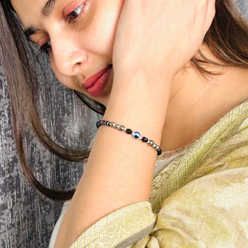 Embrace protection and elegance with this stunning bracelet, featuring a shimmering evil eye design adorned sterling Silver. Perfect for everyday wear or as a lucky charm.