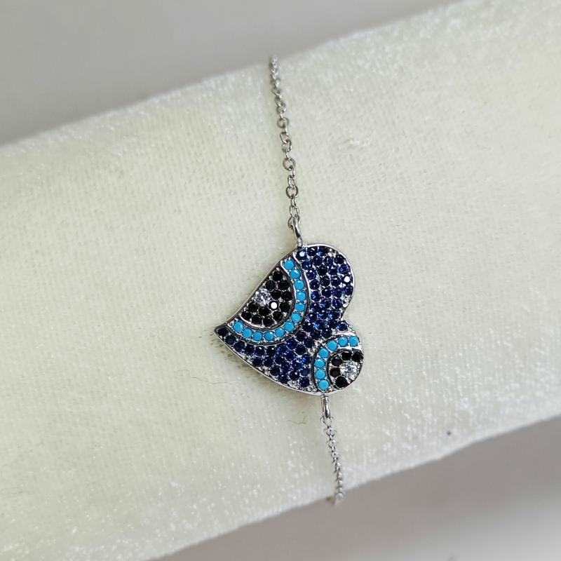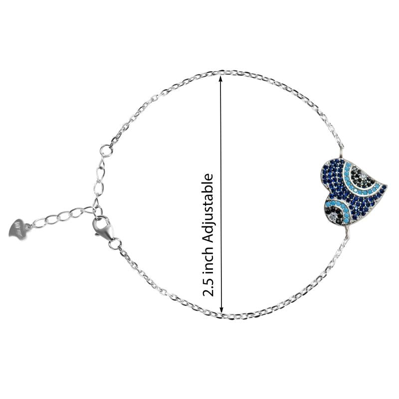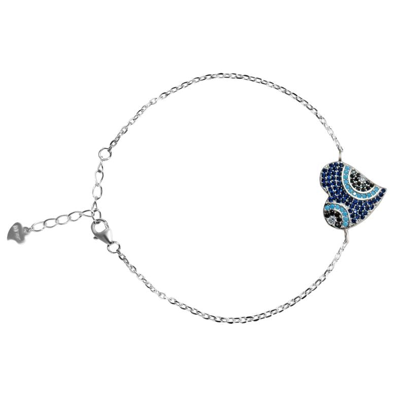 Heart shaped Evil Eye Silver Bracelet