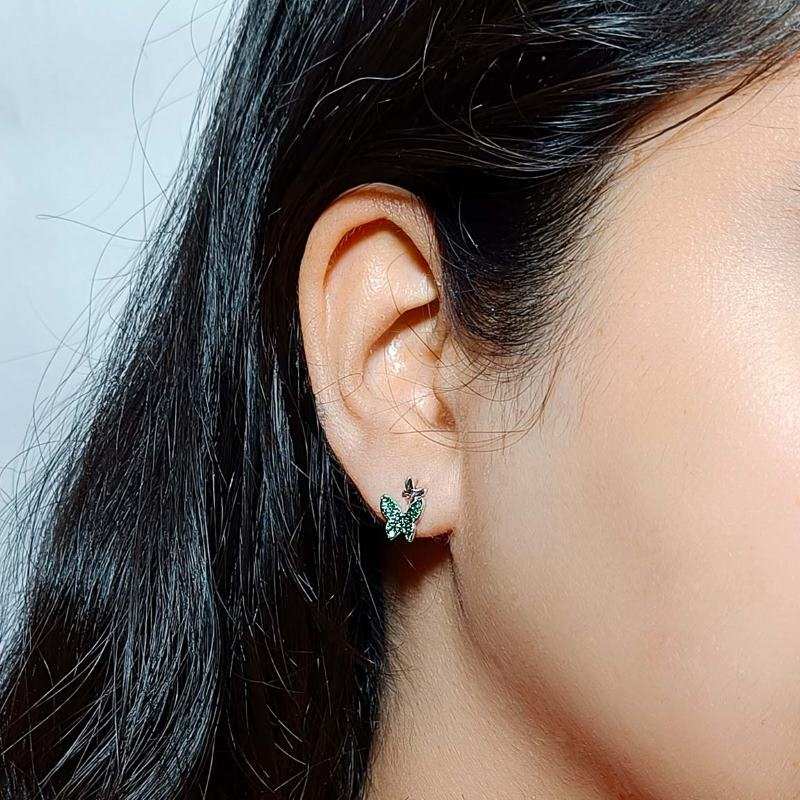 Dual Butterfly Earring Studs- Green