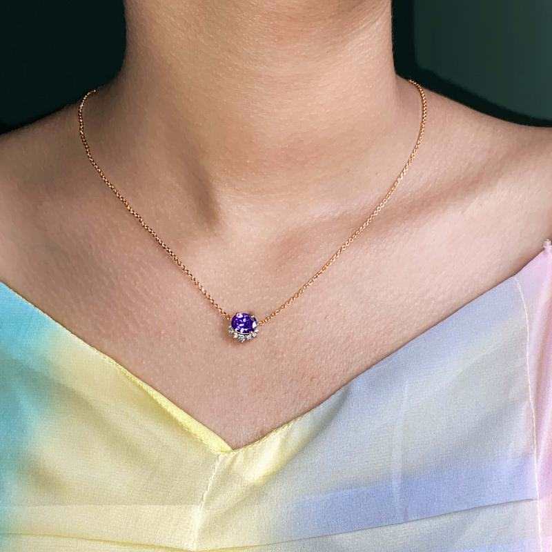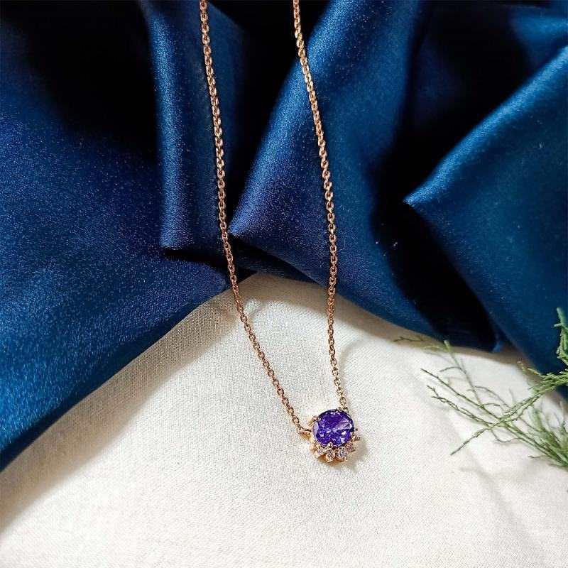 Oval Amethyst Queen's Necklace- Rosegold