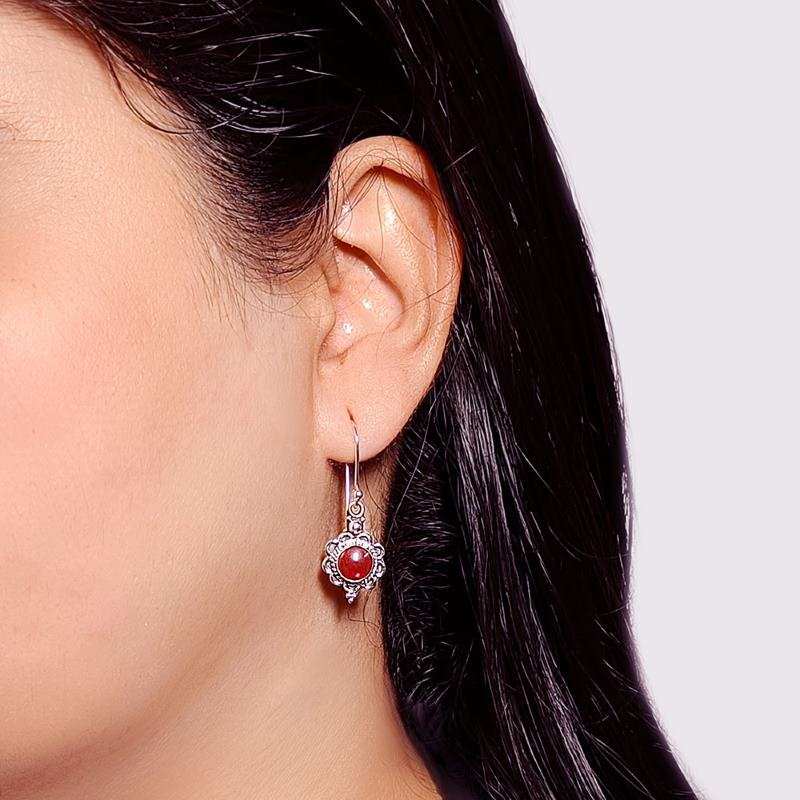 Oxidised Flower Dangles with Sun Stone