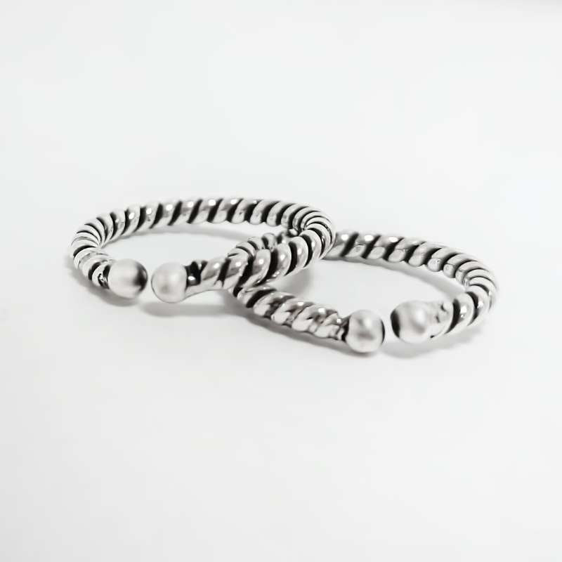 Add a touch of sophistication with our Oxidised Silver Twisted Wire Toe Rings, crafted from 925 silver. These toe rings feature a unique twisted wire design, perfect for a stylish and elegant look.