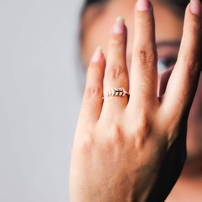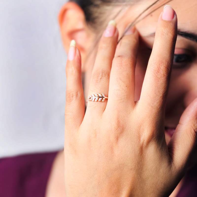 Inspired by nature, the Rose Gold Olive Leaf Ring is crafted in 925 sterling silver with a beautiful rose gold plating. Its delicate olive leaf design symbolizes peace and harmony, making it a meaningful and elegant accessory. Perfect for everyday wear or special occasions, this ring is adjustable for a comfortable and perfect fit.