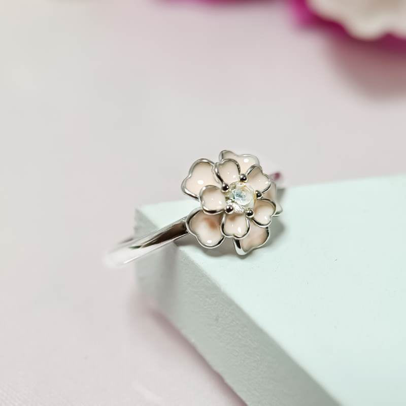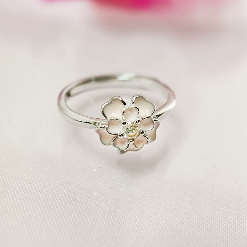 Silver Enamel Flower Ring
