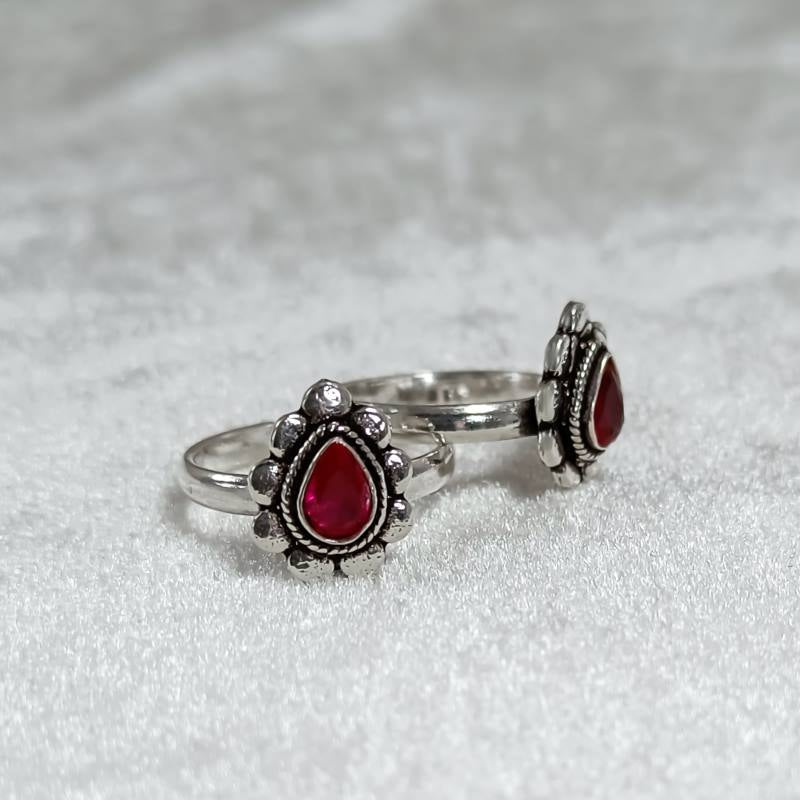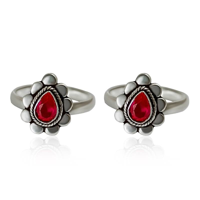 Trendy Silver Toe Rings- Red