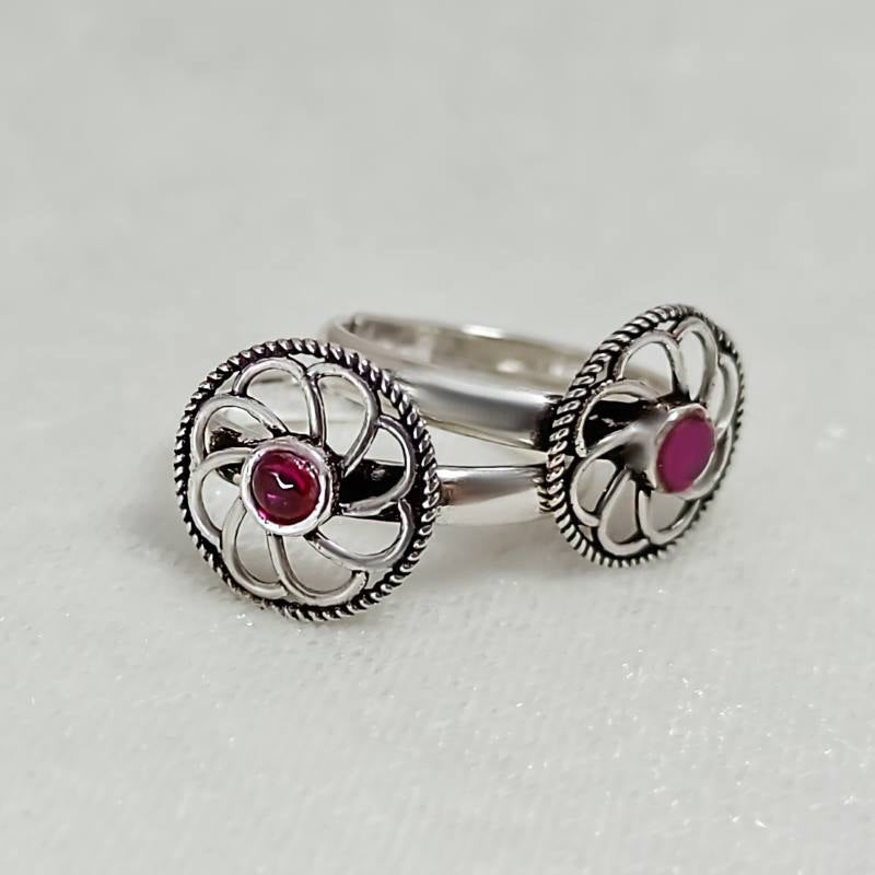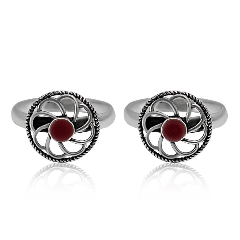 Wheel of Fortune Silver Toe Rings- Red