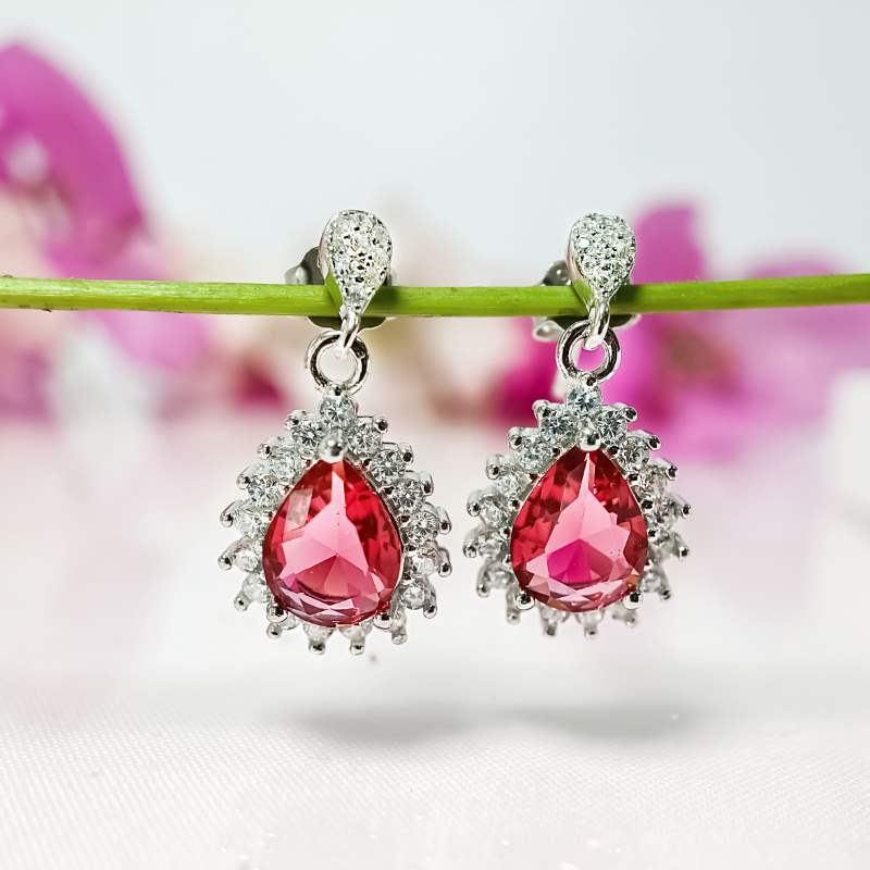 Introducing our breathtaking Crimson Halo Teardrop Earrings, meticulously crafted with 925 silver and lavishly plated with rhodium for enduring brilliance. These earrings feature striking teardrop designs adorned with vibrant crimson stones, encircled by a halo of shimmering zircons. Radiating elegance and sophistication, they're perfect for adding a pop of color and glamour to any ensemble.
