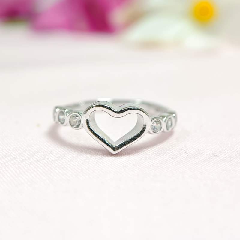 The Open Heart Solitaire Ring, crafted in 925 sterling silver, features a delicate open-heart design with a sparkling solitaire stone at its center. This romantic and timeless piece symbolizes love and affection, making it a perfect gift or statement accessory for any occasion. Adjustable for a comfortable fit.