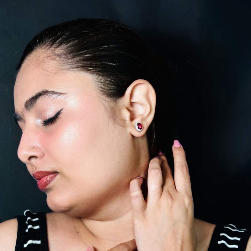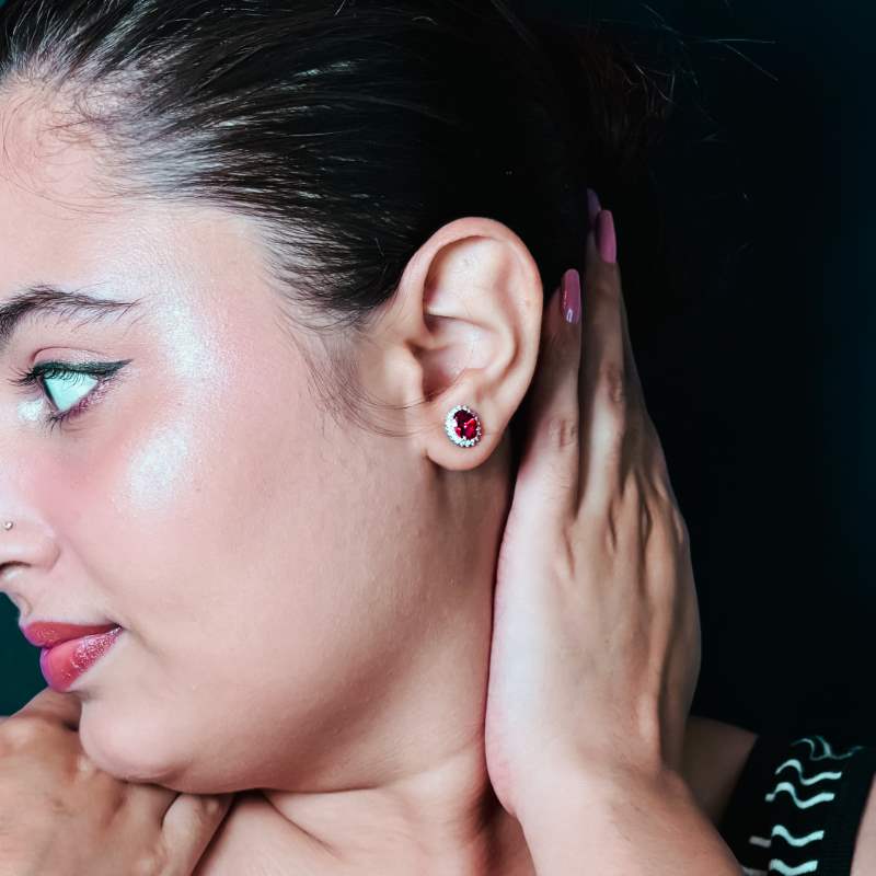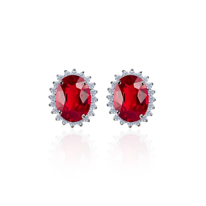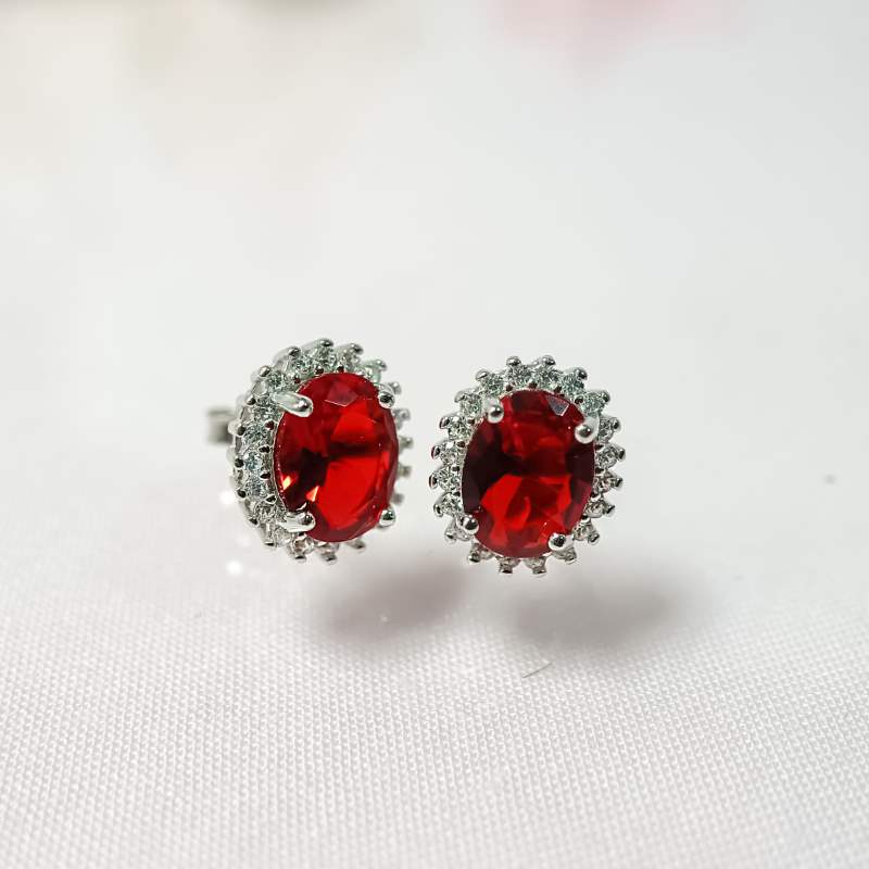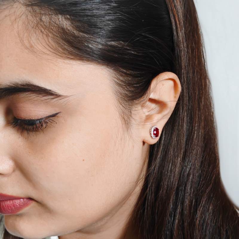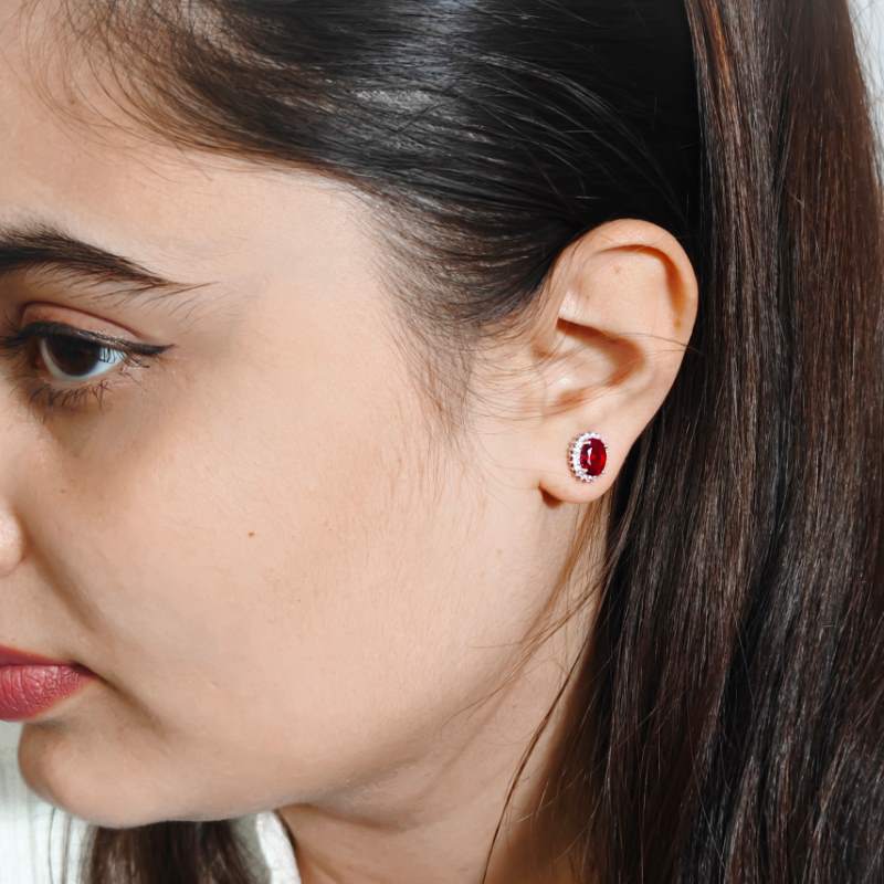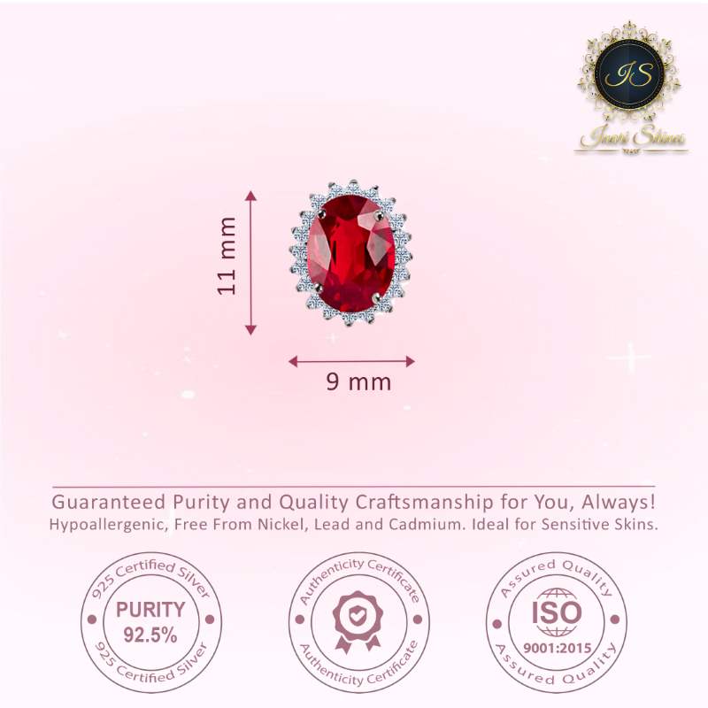 Introducing our luxurious Oval Ruby Earring Studs, crafted from 925 silver and finished with a radiant rhodium plating. These studs feature captivating oval rubies, exuding elegance and sophistication. Perfect for adding a touch of glamour to any outfit, these earrings are versatile for both casual and formal occasions.
