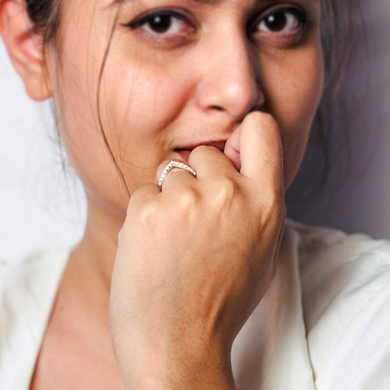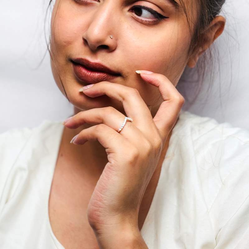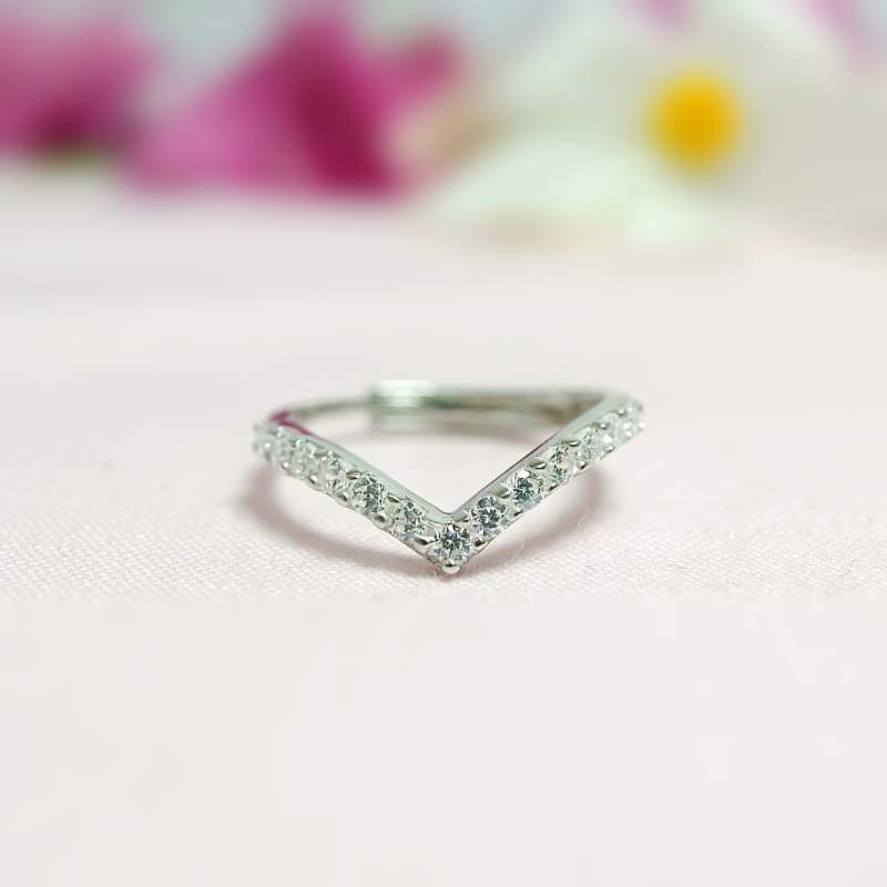 Crafted in 925 sterling silver, the V Shaped Zircon Ring features a sleek, modern "V" design adorned with sparkling zircons for added brilliance. Its minimalist style makes it a versatile accessory, perfect for stacking or wearing alone as a statement piece. Adjustable for a comfortable fit, it's ideal for any occasion.