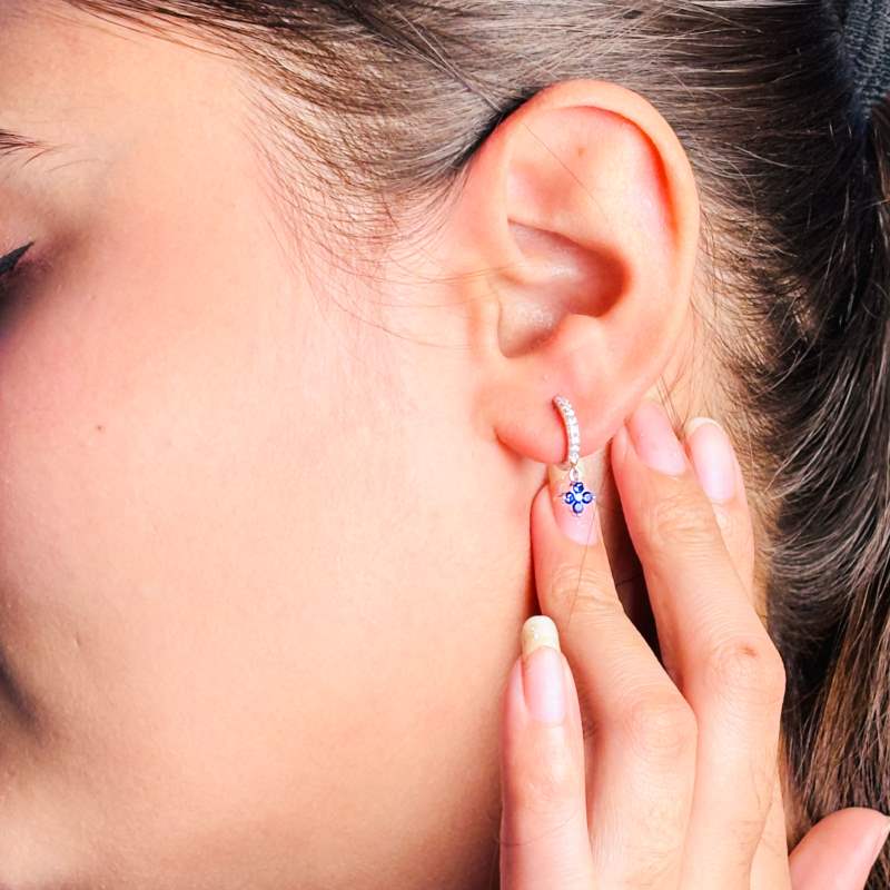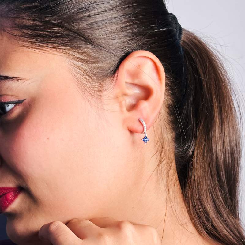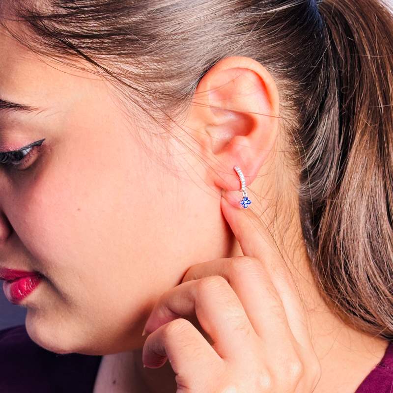 Add a pop of color to your accessory collection with our stunning Blue Flower Hoop Earrings. Made from premium sterling silver, these earrings feature intricate blue enamel flowers beautifully woven into a classic hoop design. The vibrant hue and floral motif bring a playful yet sophisticated touch, making them perfect for any occasion—from casual outings to elegant soirées. Lightweight and easy to wear, these hoops are a delightful way to express your unique style while embracing nature’s beauty. Elevate your look with these charming floral hoops that are sure to turn heads!