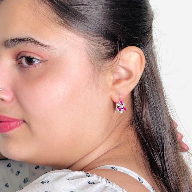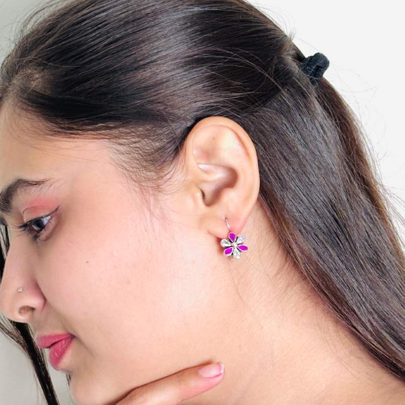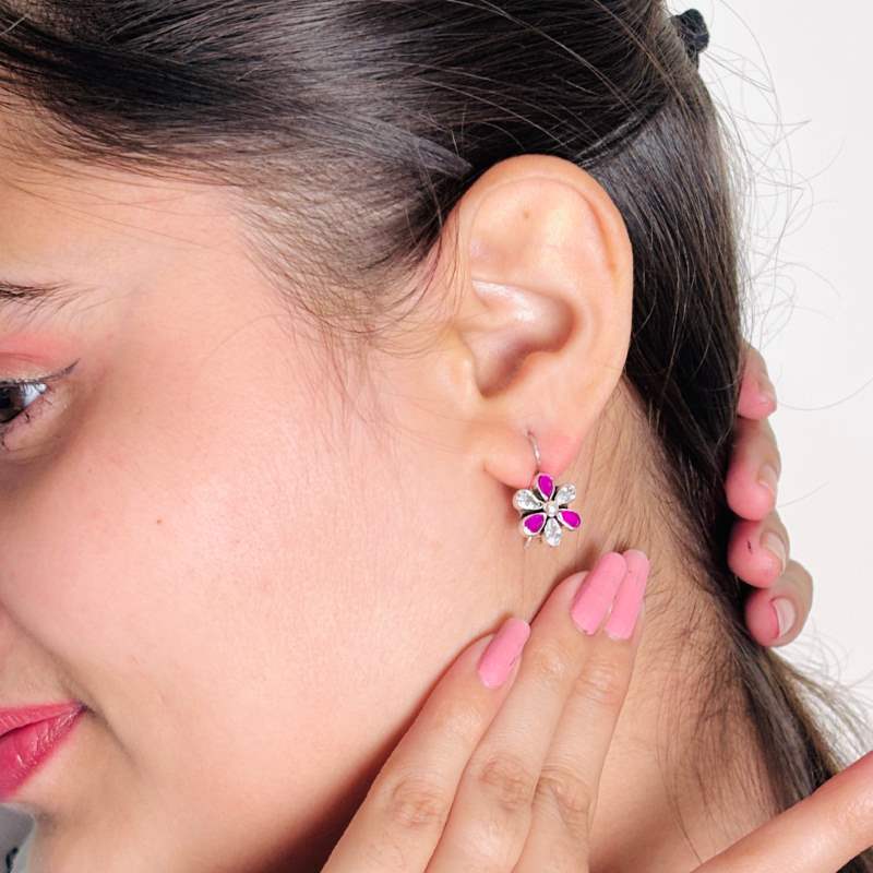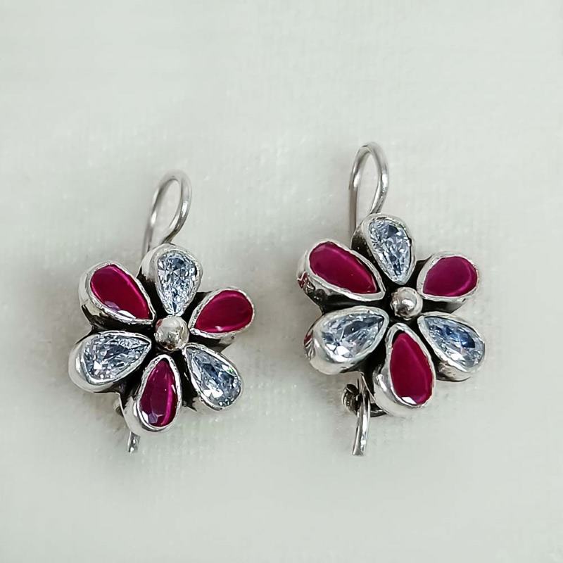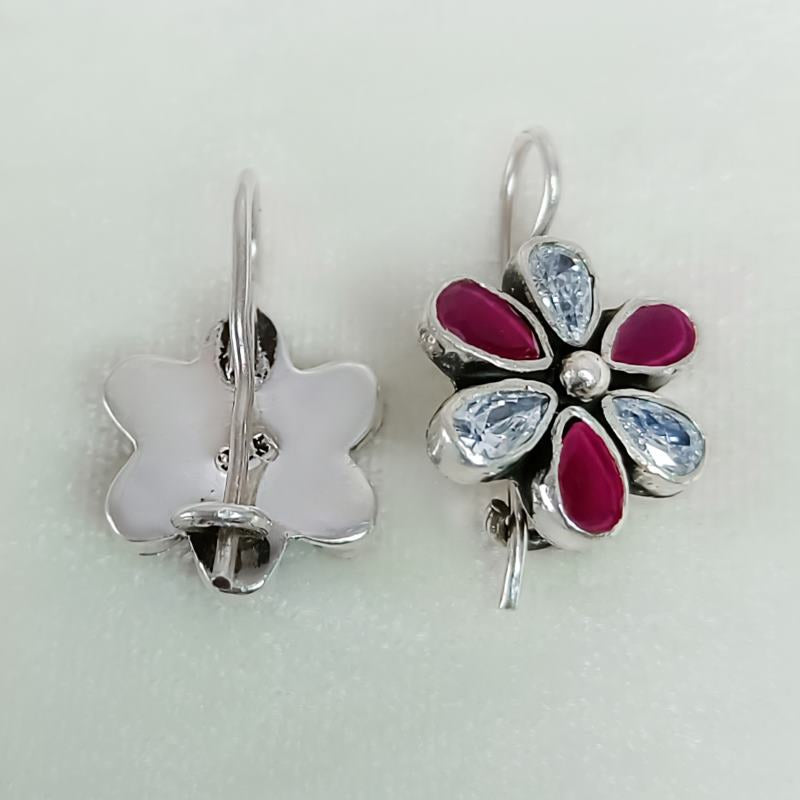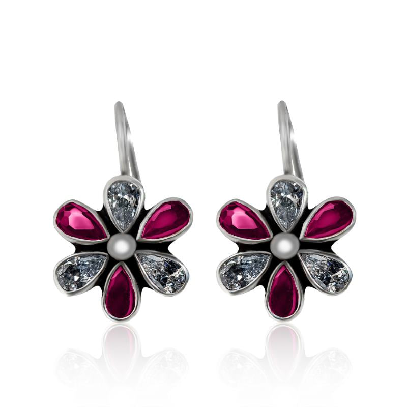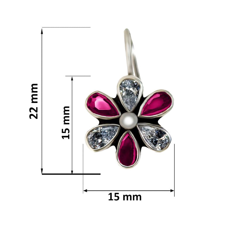flower Dangle with Ruby and Cubic Zirconia