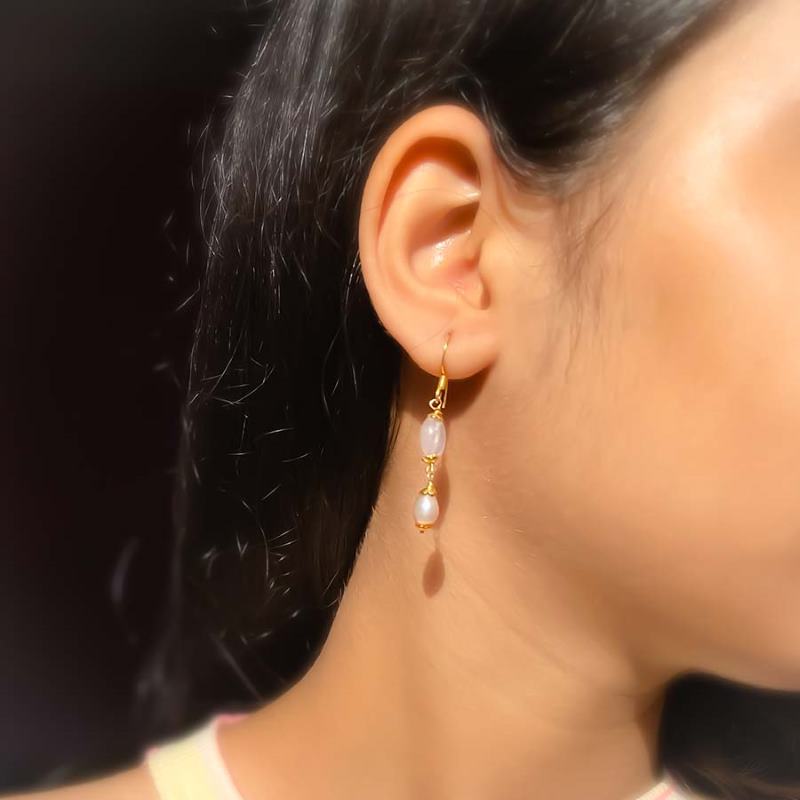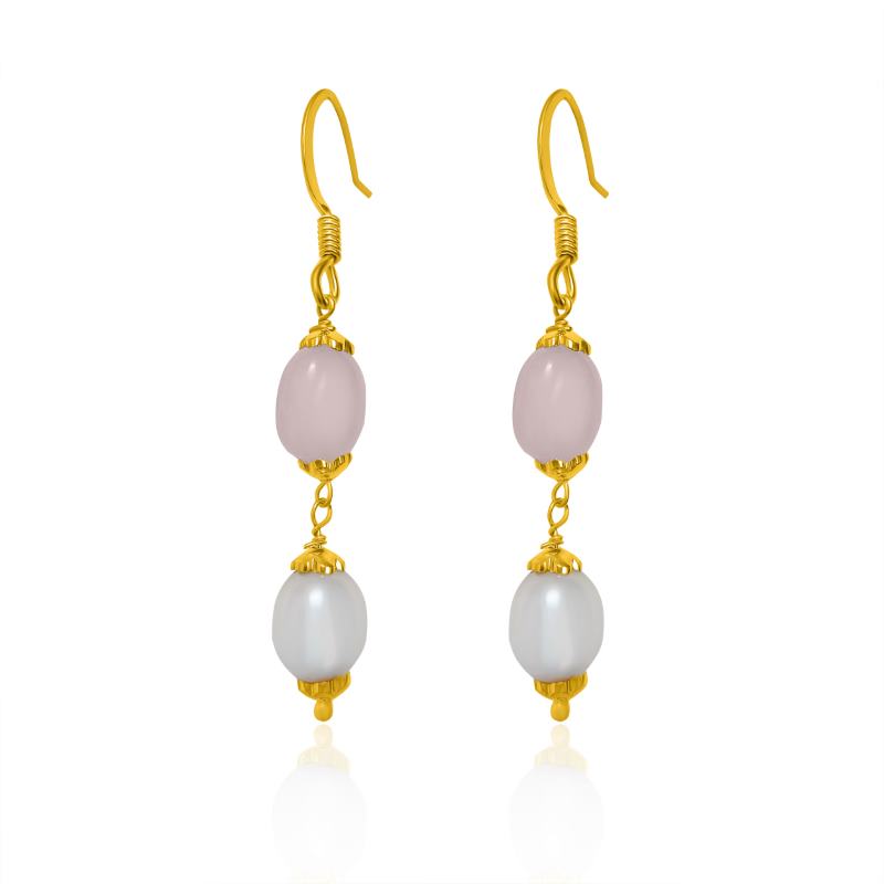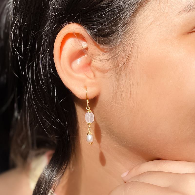 Pearl & Rose Quartz Drop Earring