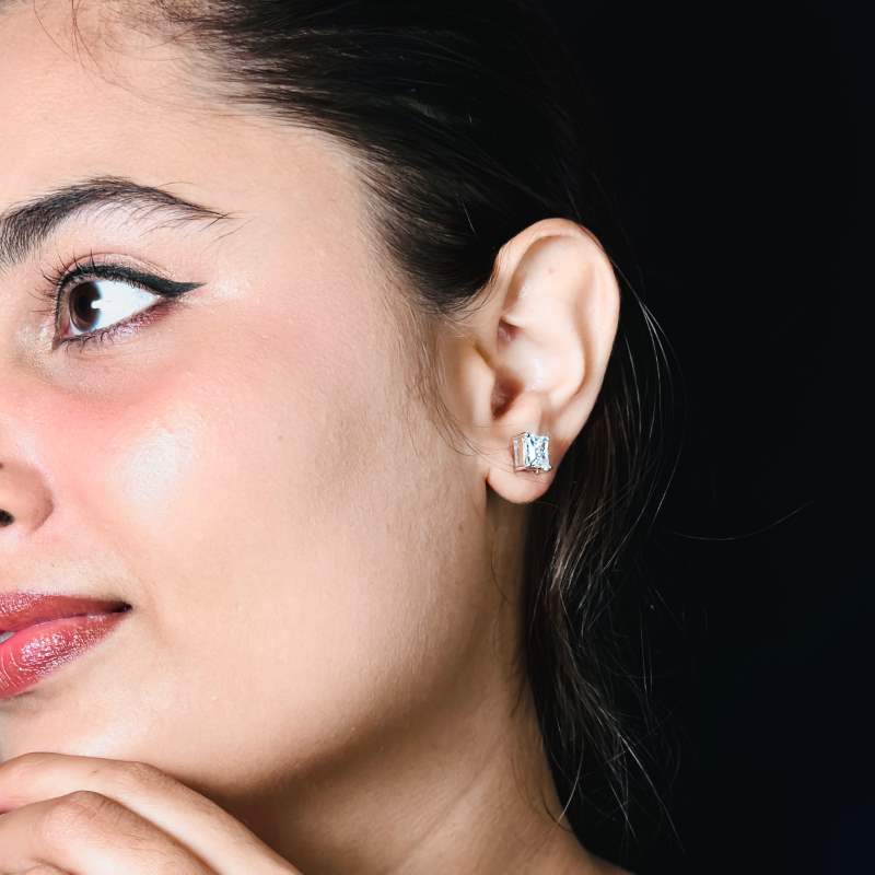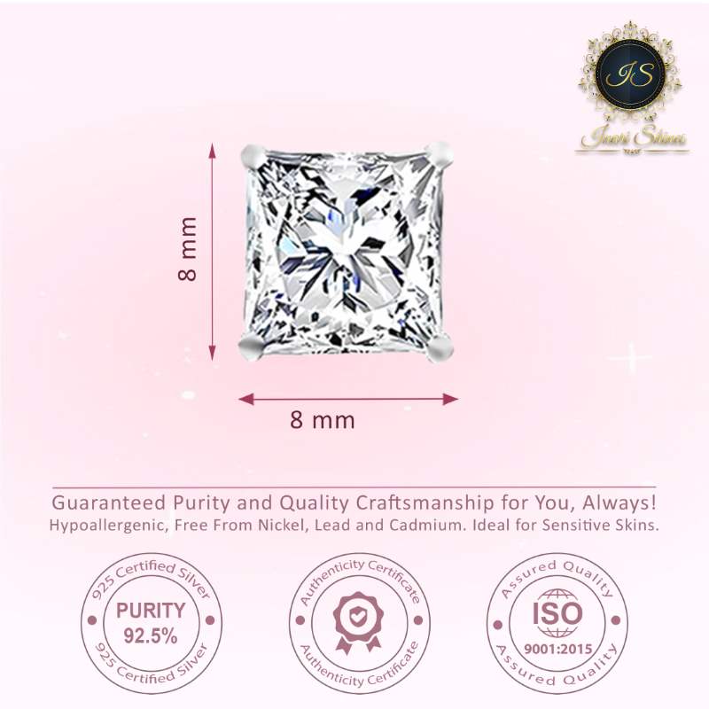 Elevate your style with our Silver Solitaire Square Zircon Earrings. Each earring showcases a 6mm square-cut zircon, beautifully set in sterling silver and rhodium plated for added brilliance. These elegant earrings are perfect for adding a sophisticated touch to any ensemble, making them an ideal choice for any occasion.