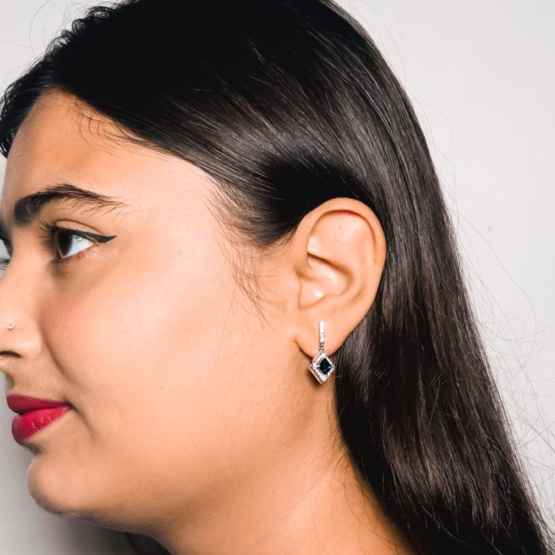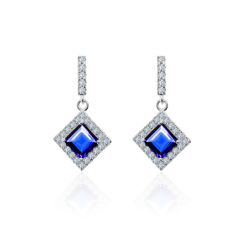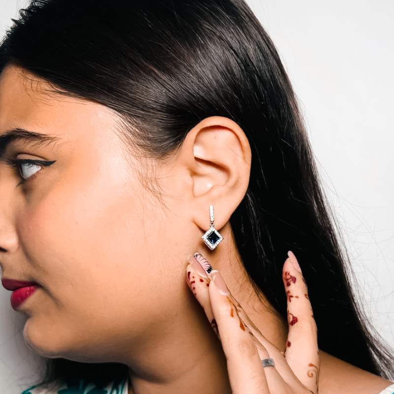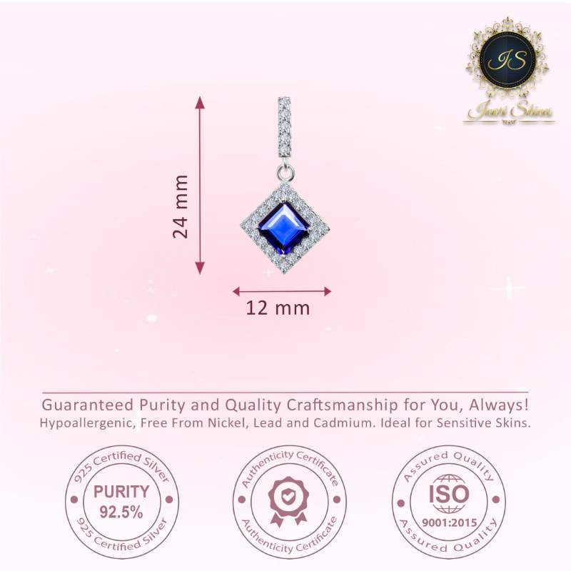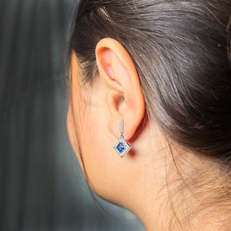 Introducing our Square Sapphire Drop Earrings, crafted in sterling silver and elegantly rhodium plated for a lasting shine. Featuring stunning square-cut sapphires, these earrings offer a perfect blend of modern sophistication and classic allure. Ideal for adding a touch of elegance to any outfit, day or night.