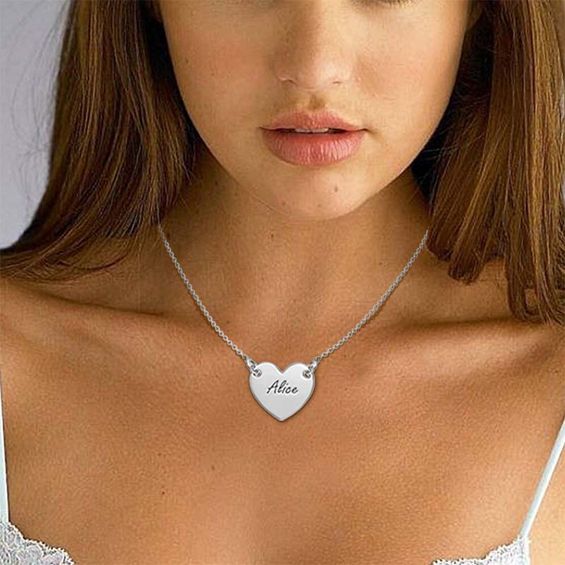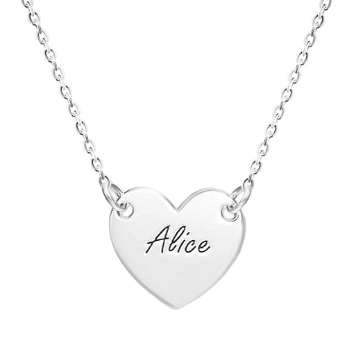 With this Silver Personalised Heart Necklace, you may commemorate special occasions. The heart-shaped pendant looks great with the traditional silver colour, making this an elegant and functional piece of jewellery. Wear this necklace as a symbol of love and connection and add a personal touch to your outfit by engraving a name or message on it.