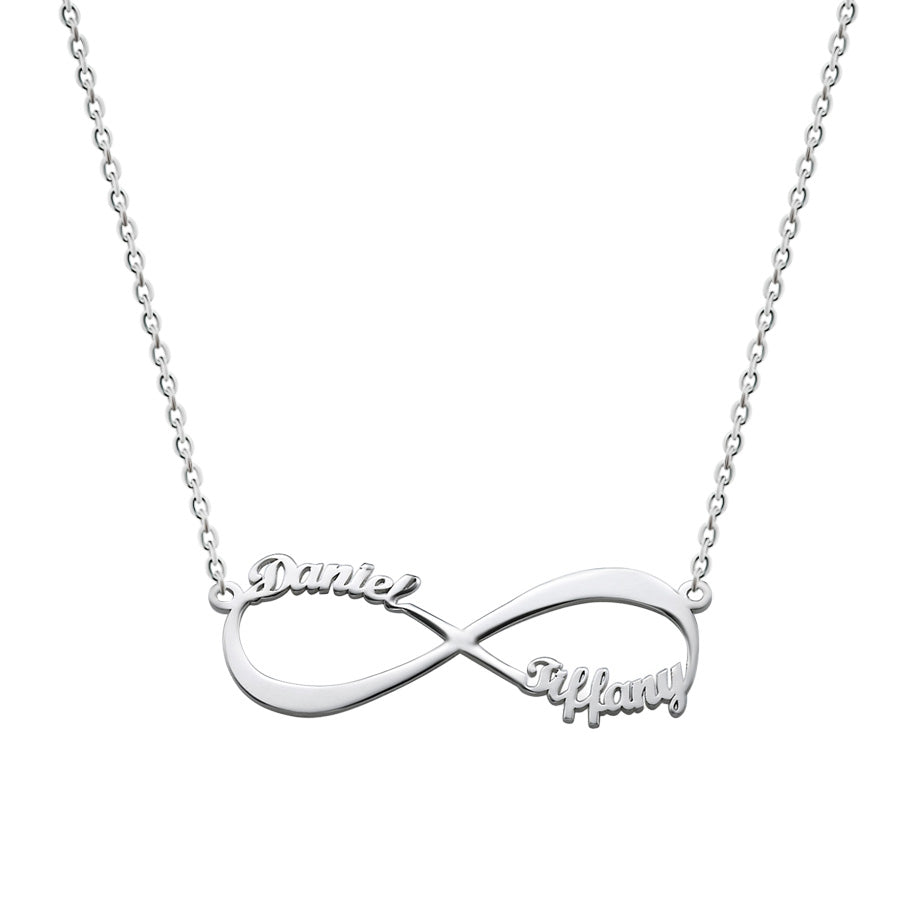 With this Silver Personalised Infinity Necklace, embrace classic elegance. Personalise the infinite sign with a name or message to create a stylish yet meaningful accessory. This necklace is a fashionable accent to any ensemble and a sign of eternal love because of its classic silver finish, which guarantees versatility.