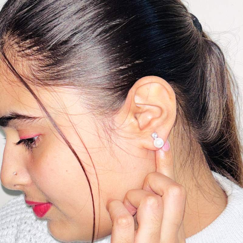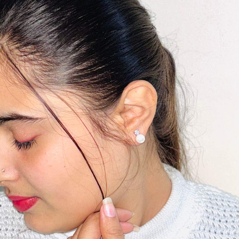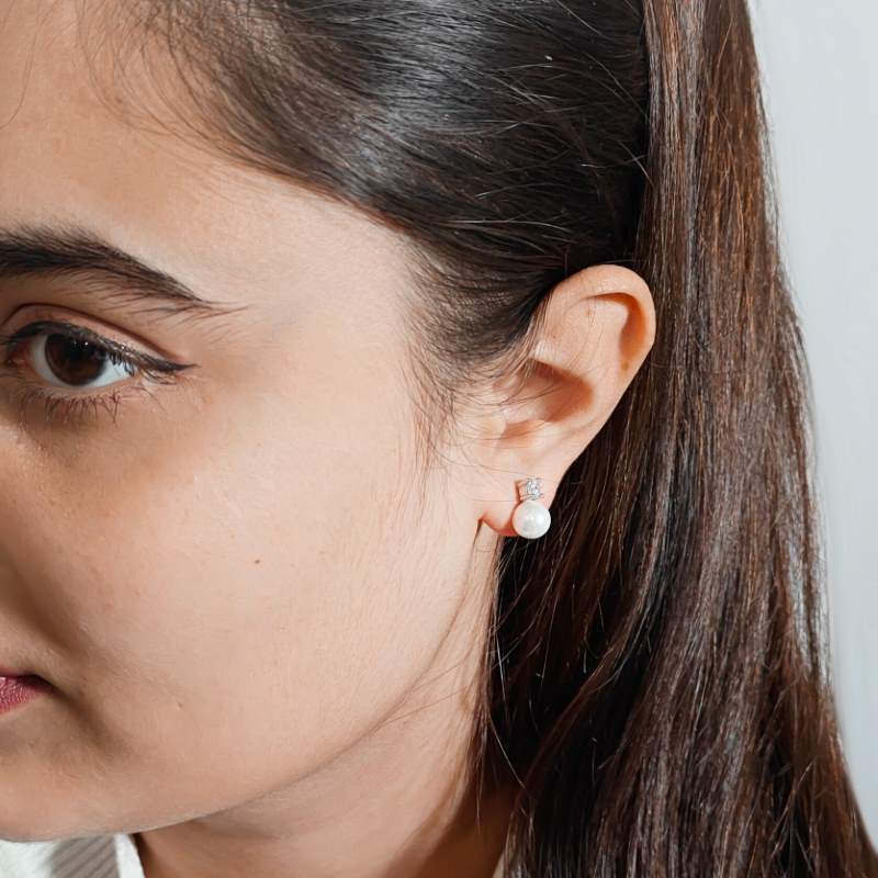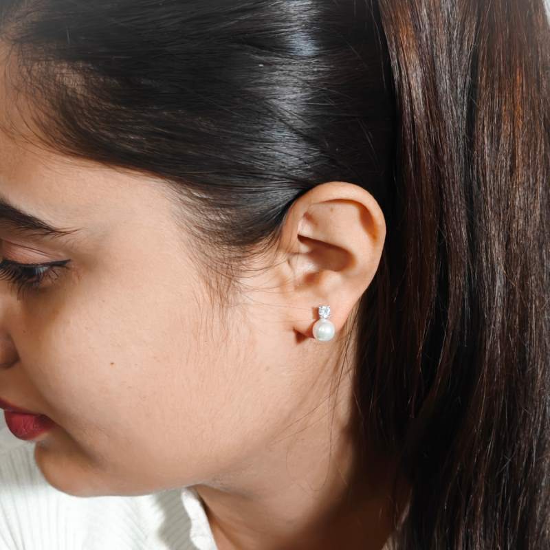 These Pearl Drop Zircon Stud Earrings, crafted in 925 sterling silver, feature a brilliant round zircon stud with a delicate pearl drop fixed just below, creating a graceful and elegant look. The sparkling zircon complements the timeless charm of the pearl, making these earrings perfect for both formal events and adding a touch of sophistication to everyday wear. Lightweight and comfortable, they’re a versatile addition to any jewelry collection.