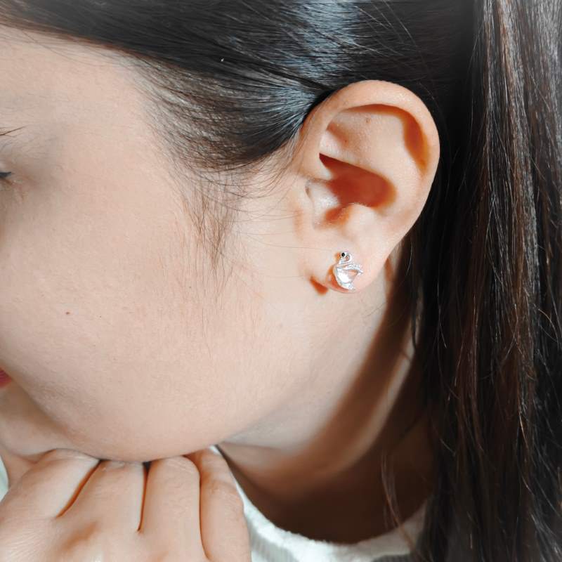 Grace your look with our Swan Stud Earrings, crafted from sterling silver for a timeless appeal. These elegant studs capture the beauty and poise of a swan, adding a delicate, graceful touch to any outfit. Perfect for everyday elegance or special occasions.