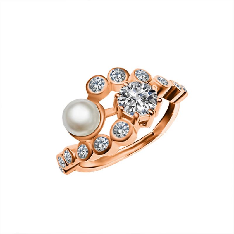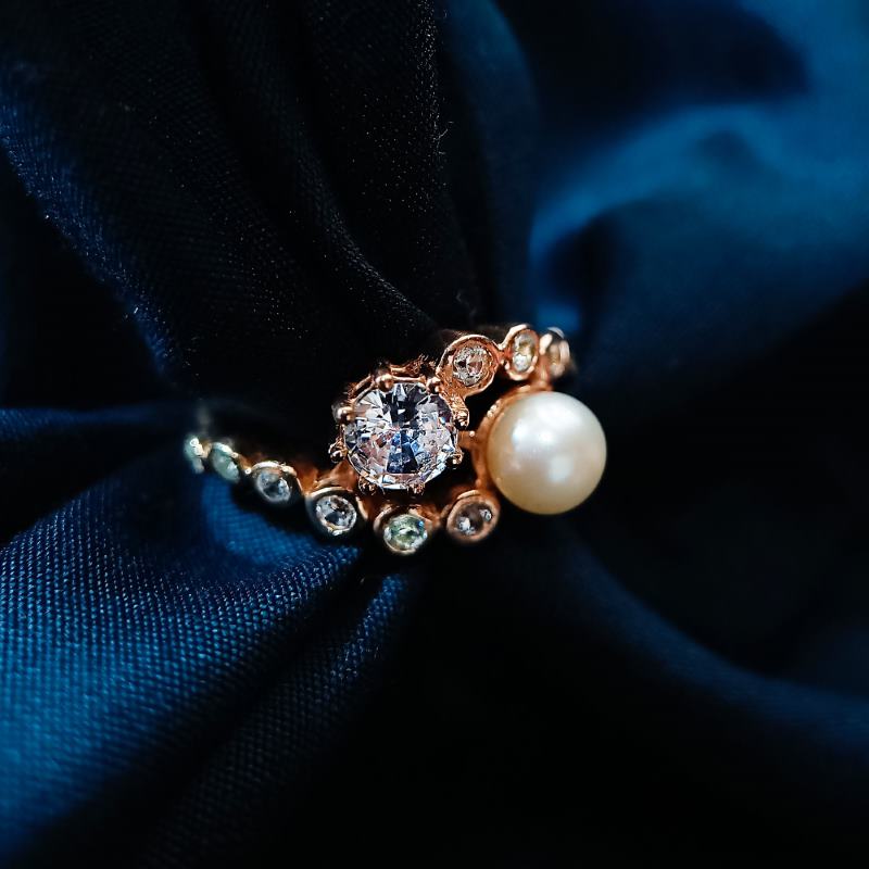 Antique Pearl & Zircon Twist Ring- Rose gold