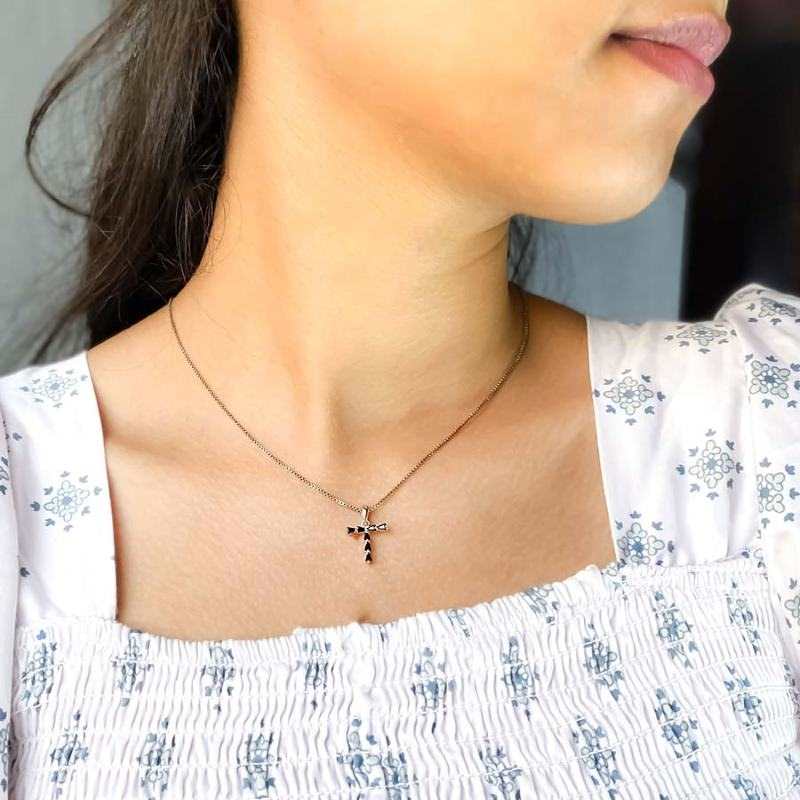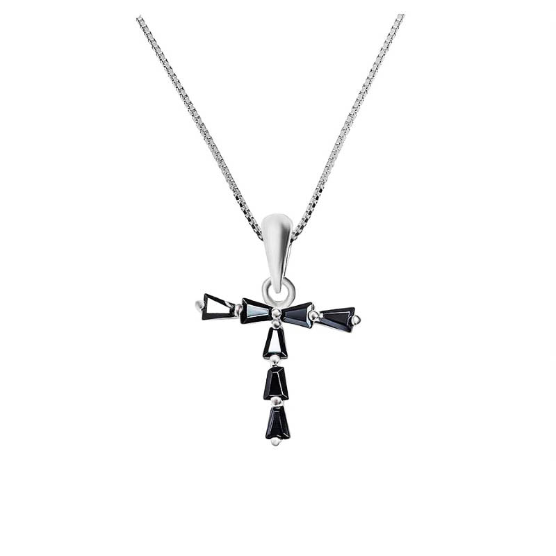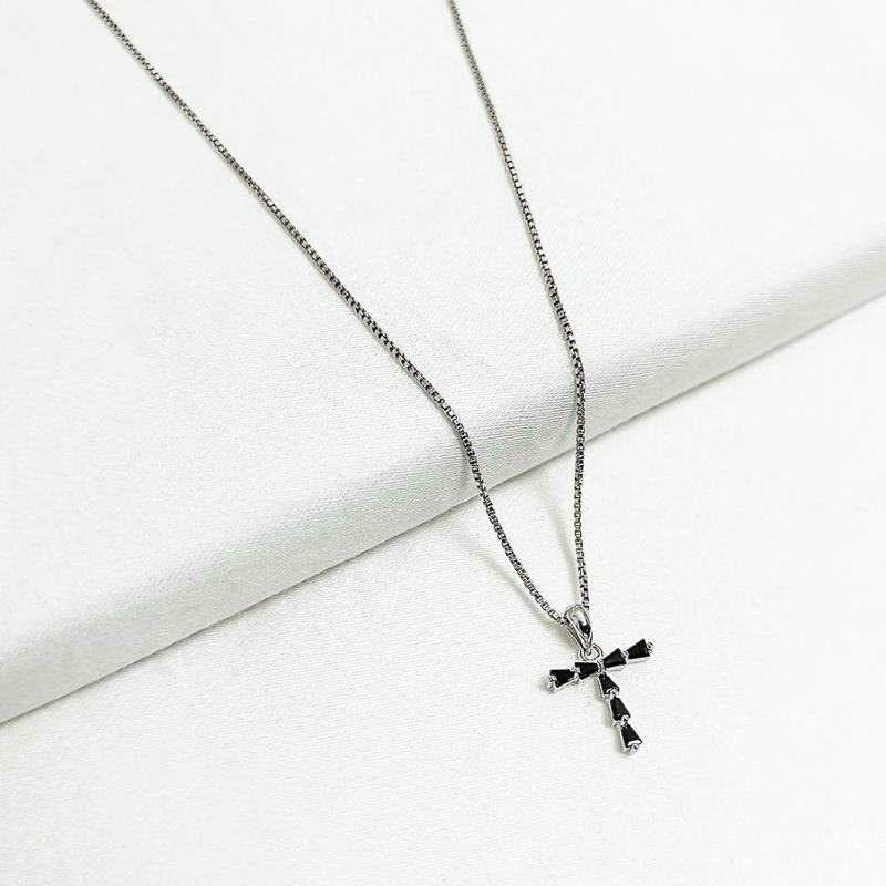 Black Stone Cross Pendant Necklace