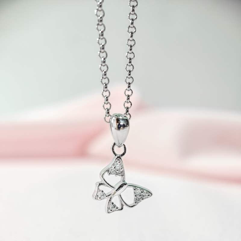 Embrace the beauty of transformation with our Butterfly Necklace adorned with sparkling zirconia stones. Crafted from high-quality 925 sterling silver, this enchanting piece features a delicately designed butterfly that captures light with its shimmering accents. Perfect for adding a touch of elegance to any outfit, this necklace is ideal for both casual outings and special occasions.