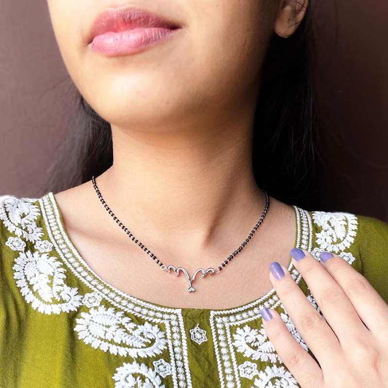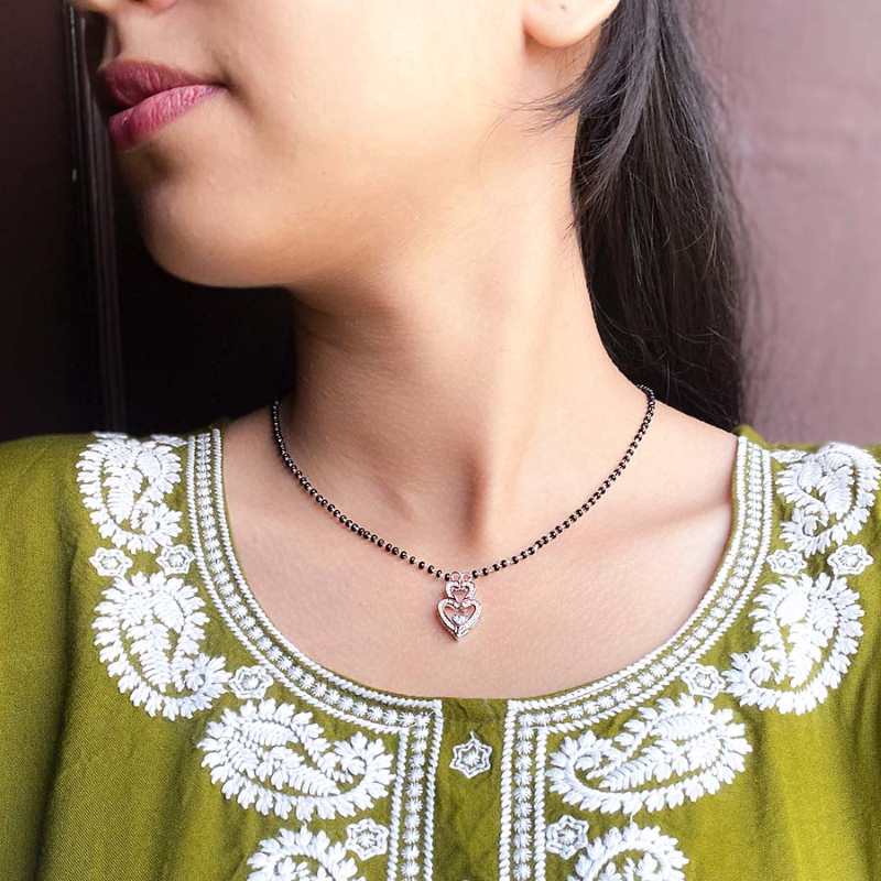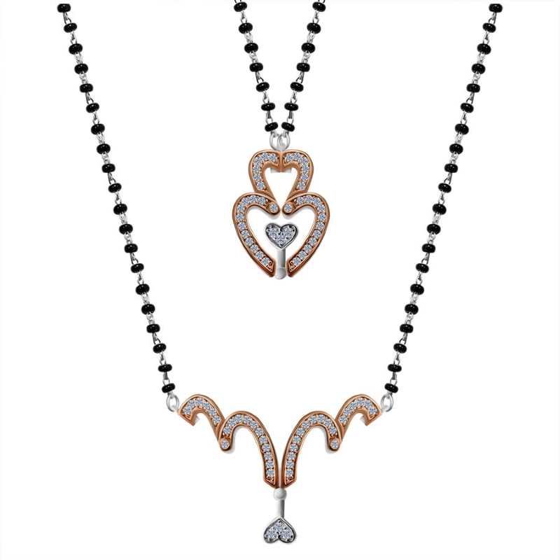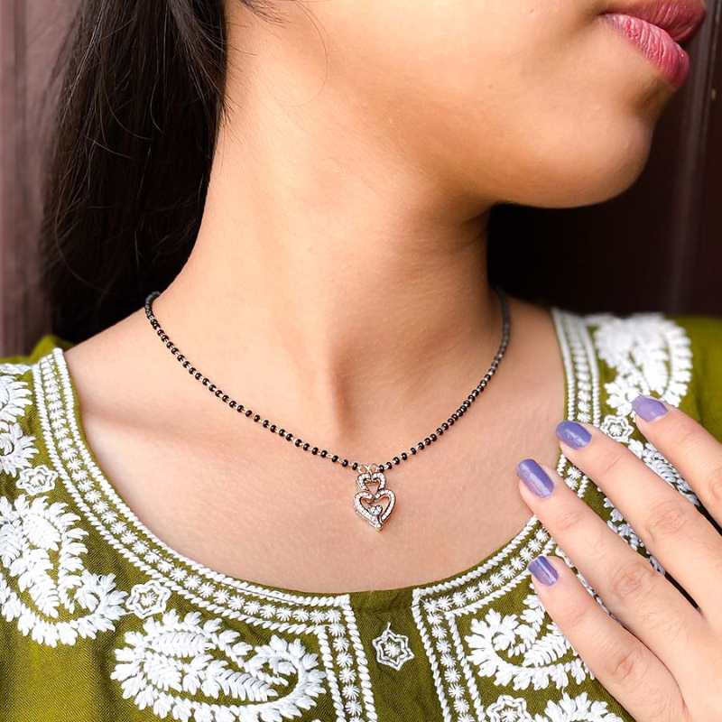 Introducing our Dual Tone Multiwear Heart Mangalsutra, a sterling silver masterpiece which seamlessly blends tradition and contemporary style. The heart-shaped convertible pendant, adorned with Rhodium and Rosegold finish, exudes elegance and versatility. This unique piece is designed for the modern woman, symbolizing timeless love and commitment. It comes with 18 inch Black bead silver chain, making it perfect for any occasion. Elevate your look with this exquisite mangalsutra, a cherished symbol of enduring beauty and cultural heritage. - 92.5% Pure Sterling silver - AAA+ Zirconia Stones - Sterling silver black bead chain 18 inch length. - Rhodium-plated to prevent silver from tarnish - Comes in Cute jewellery box with authenticity certificate - Hypoallergenic, Perfect for sensitive skin. |