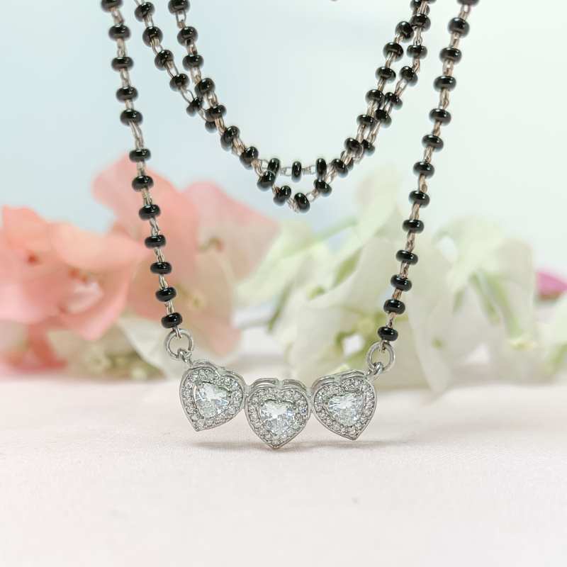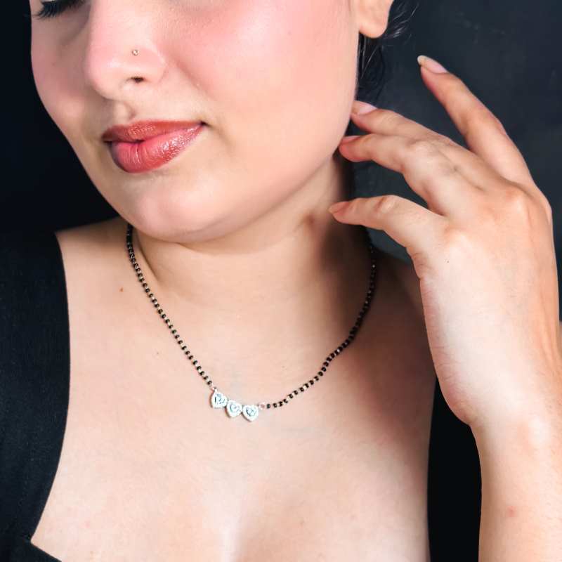 Introducing our Grace Heart Mangalsutra, crafted with 925 sterling silver and rhodium plated for lasting shine. This elegant piece features a black bead chain, symbolizing grace and eternal love. Perfect for everyday wear or special occasions, it's a timeless addition to your jewelry collection.