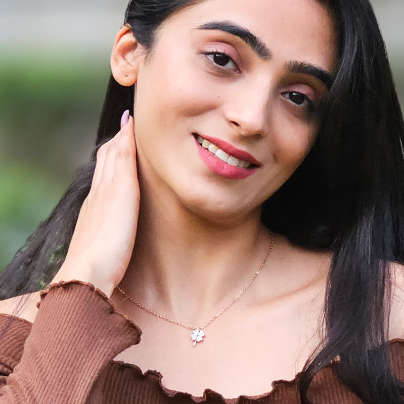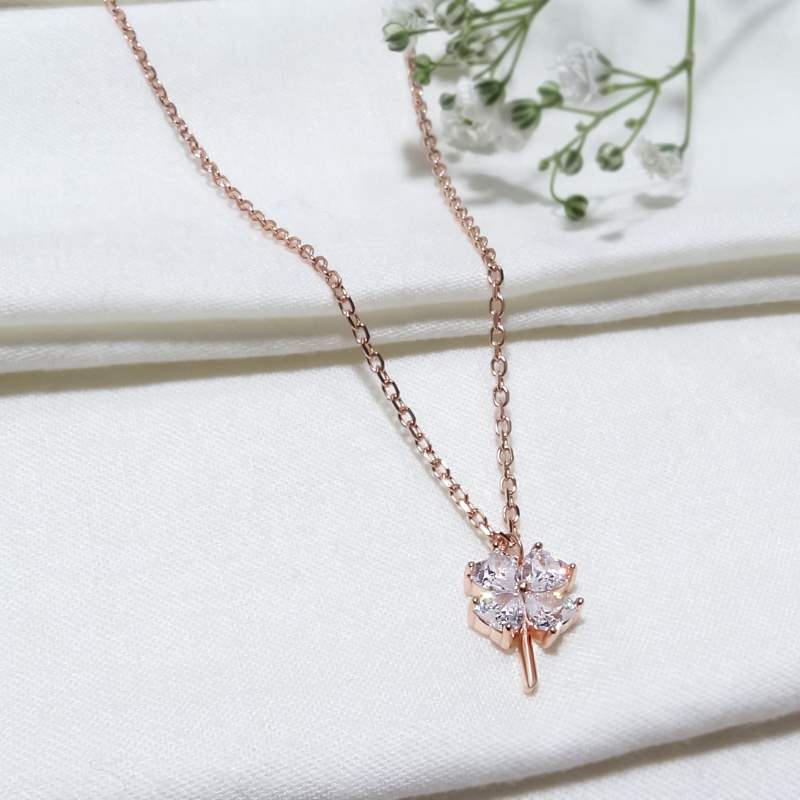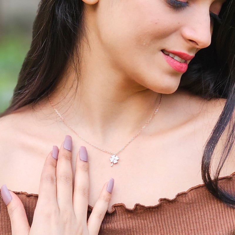 Bring a bit of luck and elegance to your style with our Rosegold Clover Pendant Chain. Crafted in 925 sterling silver with a luxurious rosegold finish, this charming pendant features a four-leaf clover design, symbolizing good fortune and positivity. Its sleek, modern look makes it versatile for both everyday wear and special occasions.