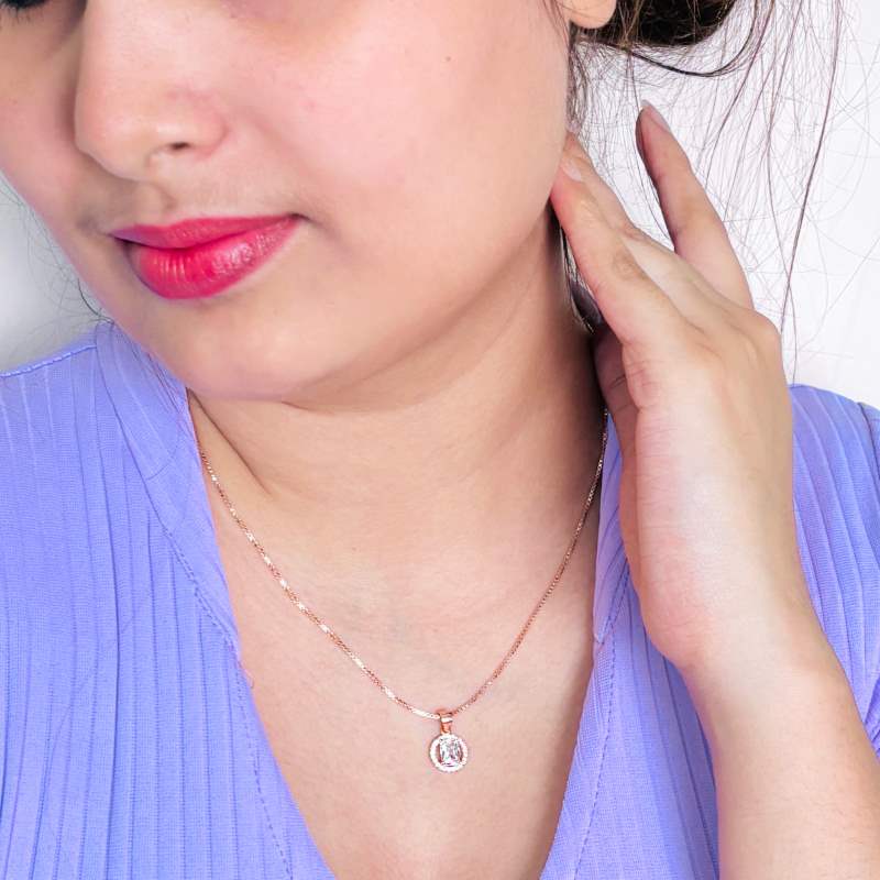 Add a touch of modern elegance to your jewelry collection with our Rosegold Round Pendant Necklace, featuring a striking rectangular zirconia. Crafted from high-quality 925 sterling silver and finished with a luxurious rosegold plating, this necklace beautifully combines classic and contemporary design elements. The radiant zirconia captures light with its brilliance, making it the perfect accessory for both everyday wear and special occasions. Elevate your style with this stunning piece from Inari Shines!