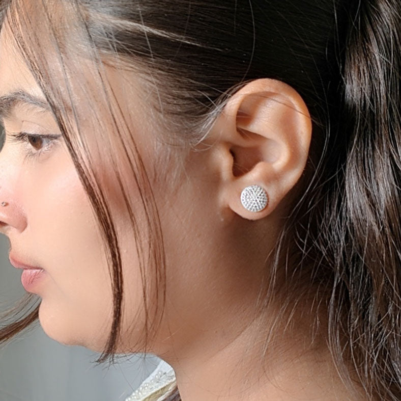 Introducing our enchanting Round Zircon Studded Earrings, meticulously crafted from 925 silver and coated with a luxurious rhodium plating. These earrings feature a timeless design adorned with dazzling round zircons, radiating elegance and sophistication. Perfect for adding a touch of sparkle to any outfit, these earrings are versatile for both everyday wear and special occasions.