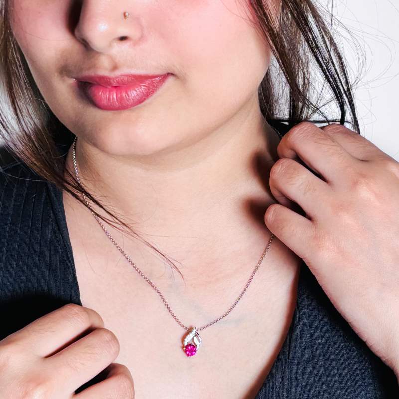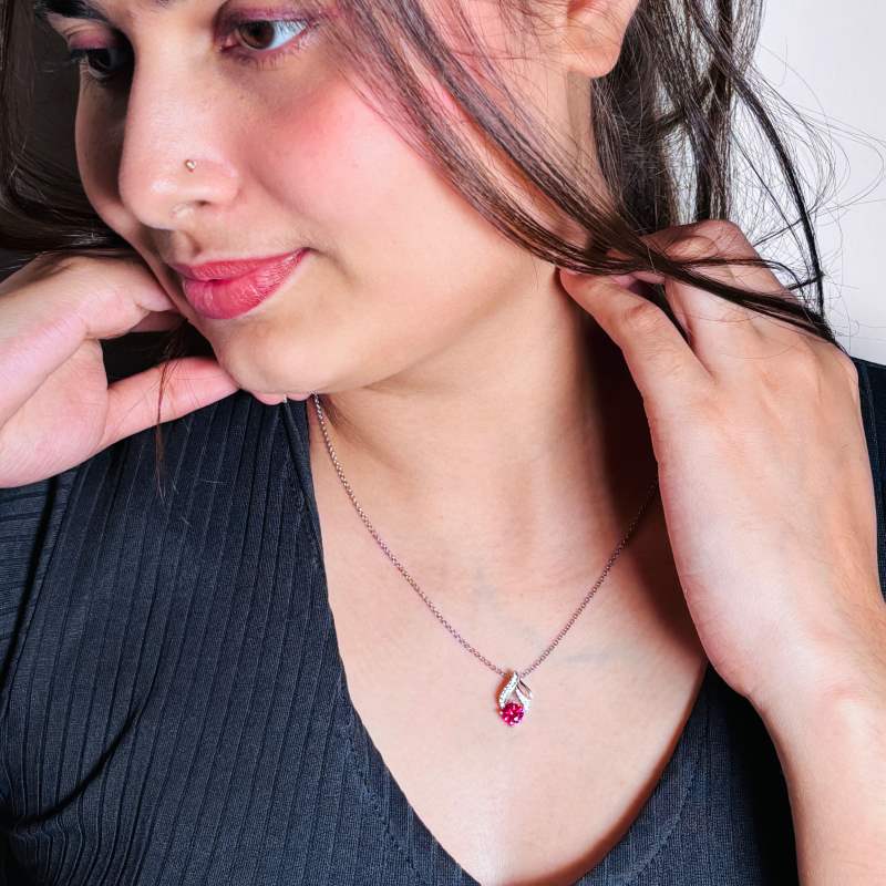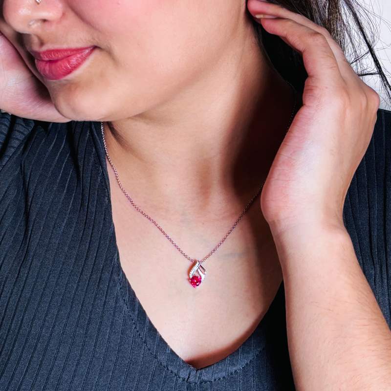 Embrace the allure of nature with our Ruby Blossom Necklace, featuring vibrant ruby accents set in exquisite 925 sterling silver. The floral-inspired design beautifully captures the essence of blooming elegance, making it a perfect statement piece for any occasion. Whether dressing up for a special event or adding flair to your everyday look, this necklace is sure to turn heads and elevate your style