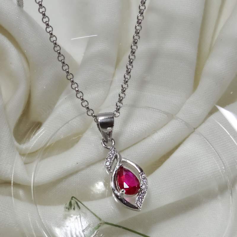 Make a bold statement with our Ruby Radiance Teardrop Pendant Chain, crafted in 925 sterling silver and featuring a stunning teardrop-shaped ruby at its center. The vibrant red gemstone symbolizes passion and elegance, framed beautifully to capture light and attention. Perfect for adding a touch of luxury to any outfit, this pendant chain is an ideal choice for both special occasions and everyday sophistication.