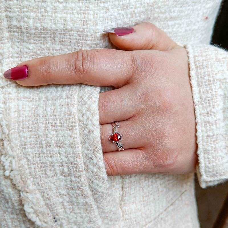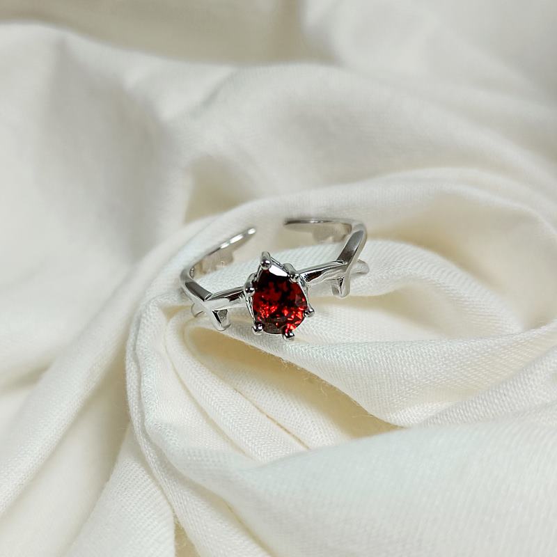 Silver Solitaire Bird Ring- Red