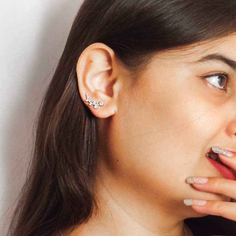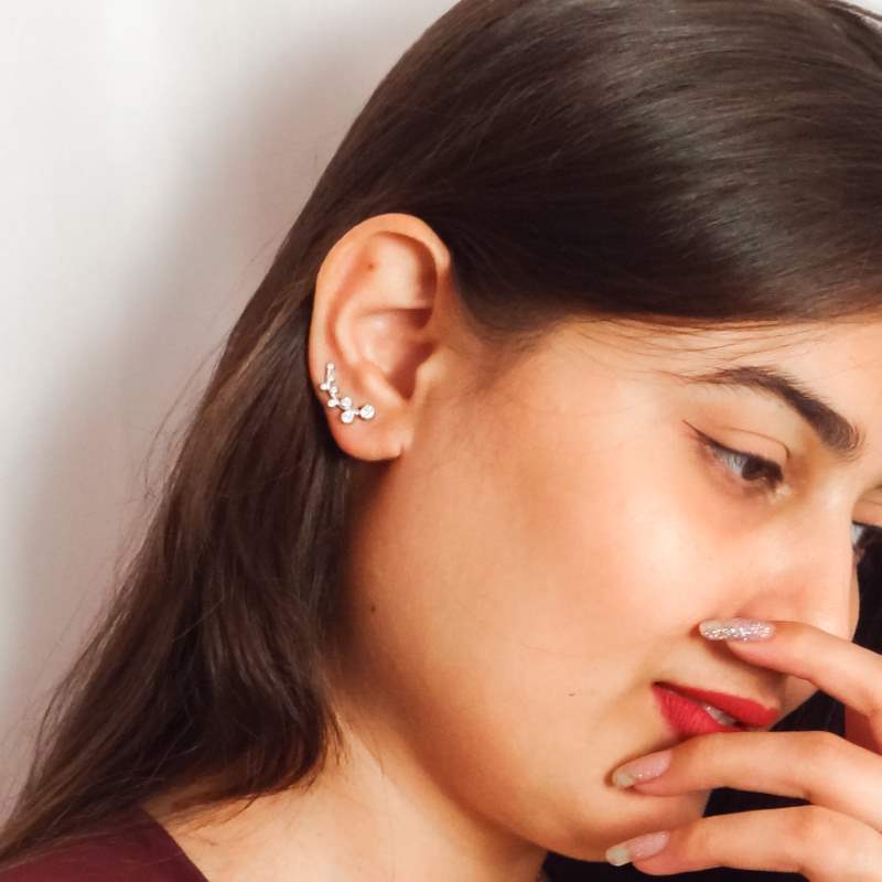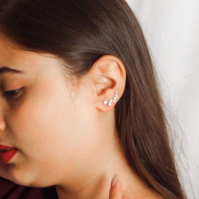 Crafted in 925 sterling silver, these Silver Studded Cuff Earrings offer a modern, edgy look with a line of sparkling studs that elegantly wrap around the ear. Perfect for adding a touch of sophistication and sparkle, these cuffs are versatile for both casual and formal wear. Comfortable and secure, they’re a stylish addition to any jewelry collection.