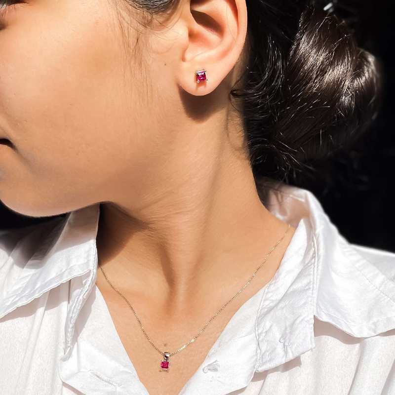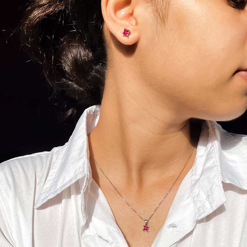 Square Ruby Jewellery Set