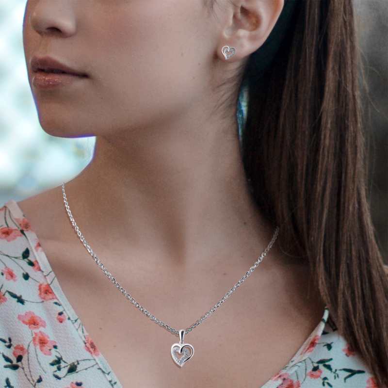 Classic Heart Pendant Earring Jewellery Set