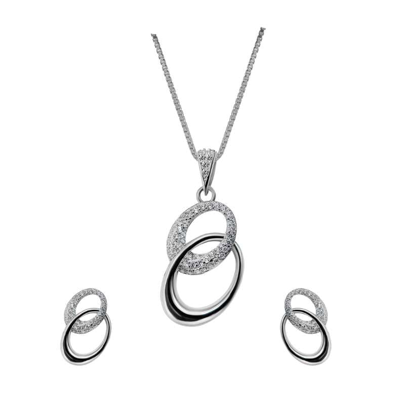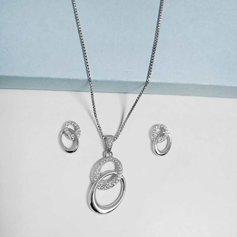 Dual Circle Pendant Earring Jewellery Set