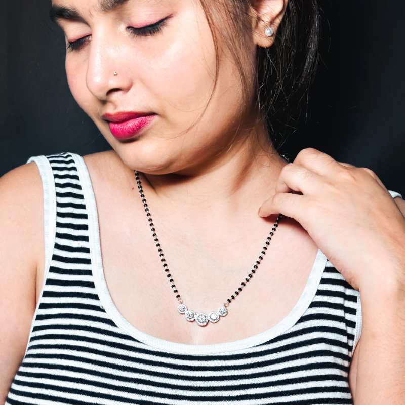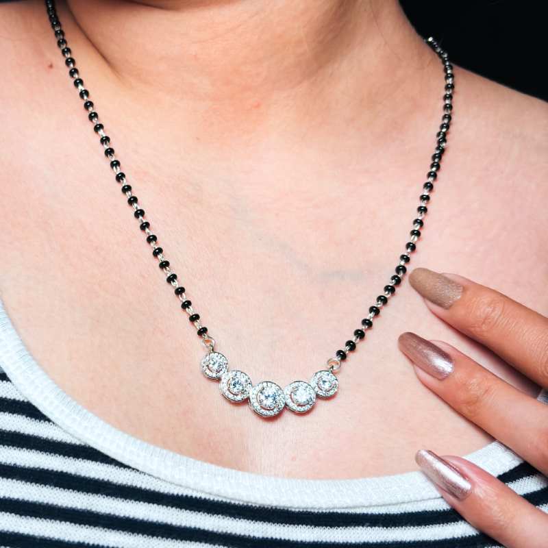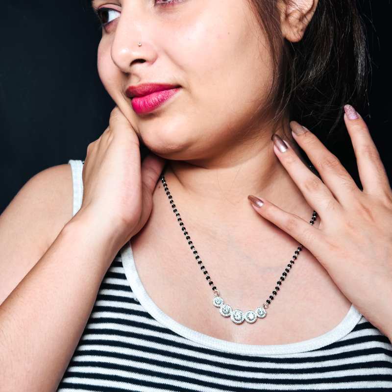 Experience the elegance of our Quintessence Circle Mangalsutra, crafted from premium 925 silver and adorned with rose gold plating. This beautifully designed piece features a delicate circle motif, symbolizing eternal love and unity, perfect for the modern bride.