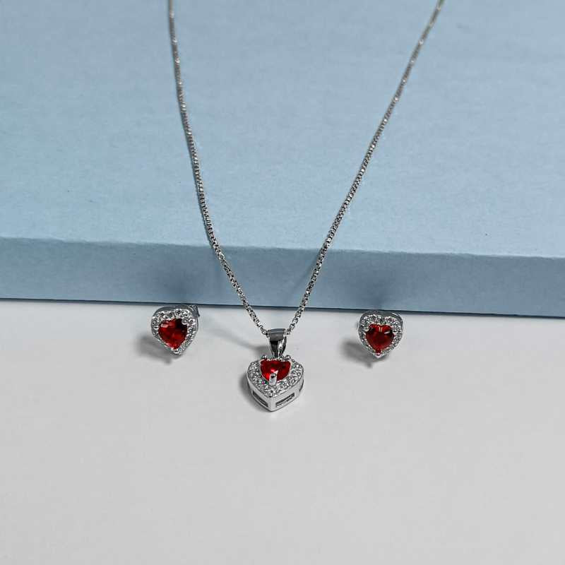 Red Solitaire Heart Jewellery Set