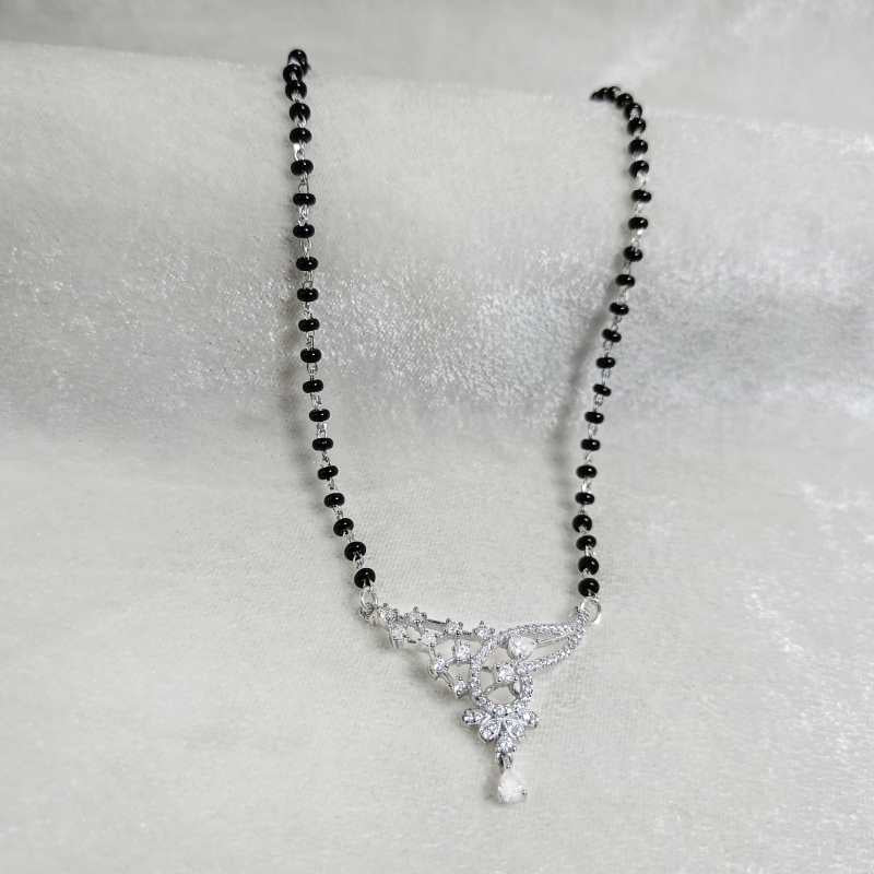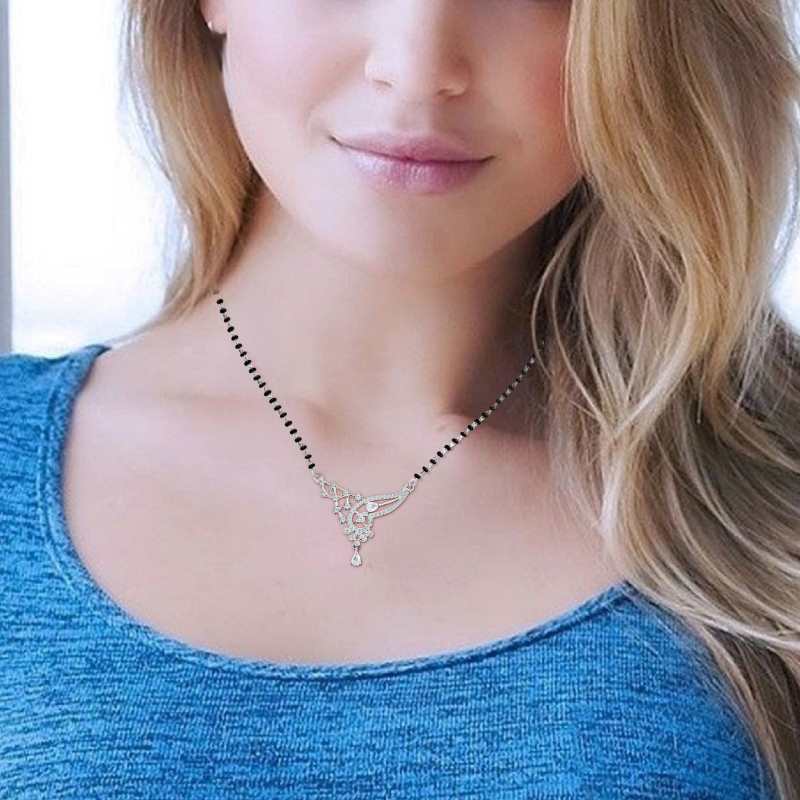 Devine Love Mangalsutra set is a perfect choice for those looking for a style in her traditional daily wear. - 92.5% Pure Sterling silver - AAA+ Zirconia Stones - Sterling silver black bead chain 18 inch length. - Rhodium-plated to prevent silver from tarnish - Comes in Cute jewellery box with authenticity certificate - Hypoallergenic, Perfect for sensitive skin. |