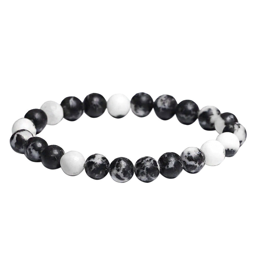 Stretchable Bracelet, handmade with Certified Natural Black & White Swirl Jasper Stones| Beads size: 8 mm| Diameter : 2.5 Inch| Stretchable- fit for every size.