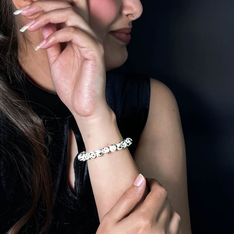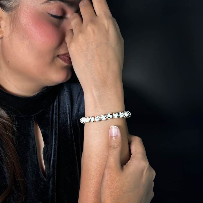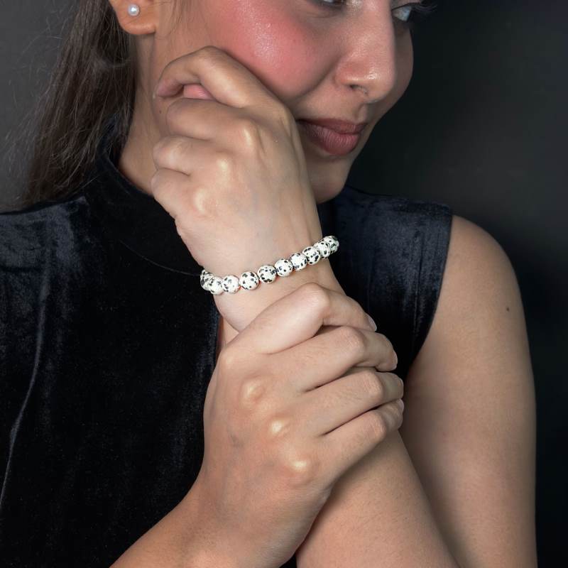 Stretchable Bracelet, handmade with Certified Original Dalmatian Jasper stones| Beads size: 8 mm| Diameter : 2.5 Inch| Stretchable- fit for every size.