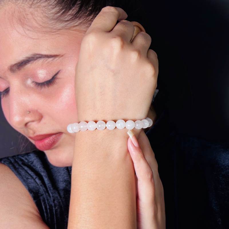 - Soft Pink Hue: The bracelet is adorned with genuine rose quartz beads in a delicate, soothing pink hue, making it a visually delightful and calming piece.