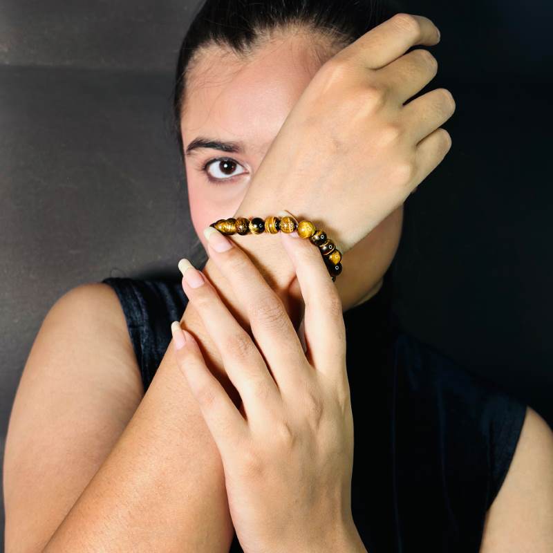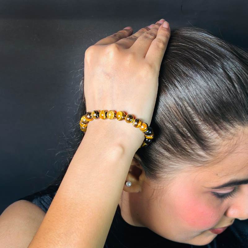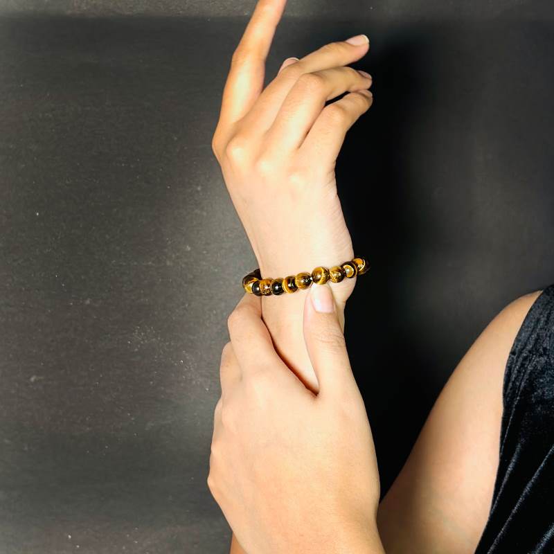 Stretchable Bracelet, handmade with Certified Tiger Eye Stones| Beads size: 8 mm| Diameter : 2.5 Inch| Stretchable- fit for every size.