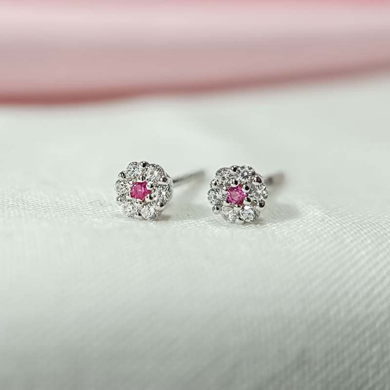 Pink and White Zircon Earring Studs