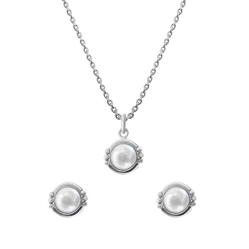 The Silver Pearl Core Jewellery Set by Inari Shines is an elegant and timeless collection crafted from 925 sterling silver. Featuring real Fresh Water pearl at its core, this set beautifully blends classic charm with modern sophistication. Ideal for any occasion, it adds a touch of grace to your ensemble, making you shine with understated elegance.